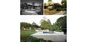 The glass courtyard at the main entrance of the house was another important focus of the landscape restoration efforts. Overgrown and neglected plantings were removed and replaced with a palette aligning with the original intent. The original boulders were retained and placed per the historic photographs.