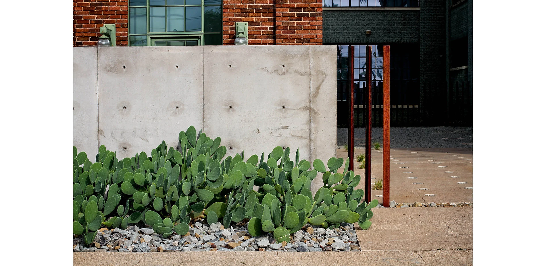 The Power Station is a significant and prominent Dallas restoration, demonstrating what can happen when vision and creativity are at the helm of the process. Programming and development of the site’s exterior spaces were as important to the success of the project as was the architectural restoration of the building. Much of the garden’s design originated from studying the views from inside the building with selective use of both hardscape and plant material for screening. Juxtaposed with the historic architectural details of the substation, the garden’s aesthetic incorporates simple modern element constructed from a restrained materials palette of crushed aggregate and rip rap, architectural and recycled concrete, steel, and native plantings. The continual patination of these materials ties aging but timeless architecture to garden in a complimentary fashion.