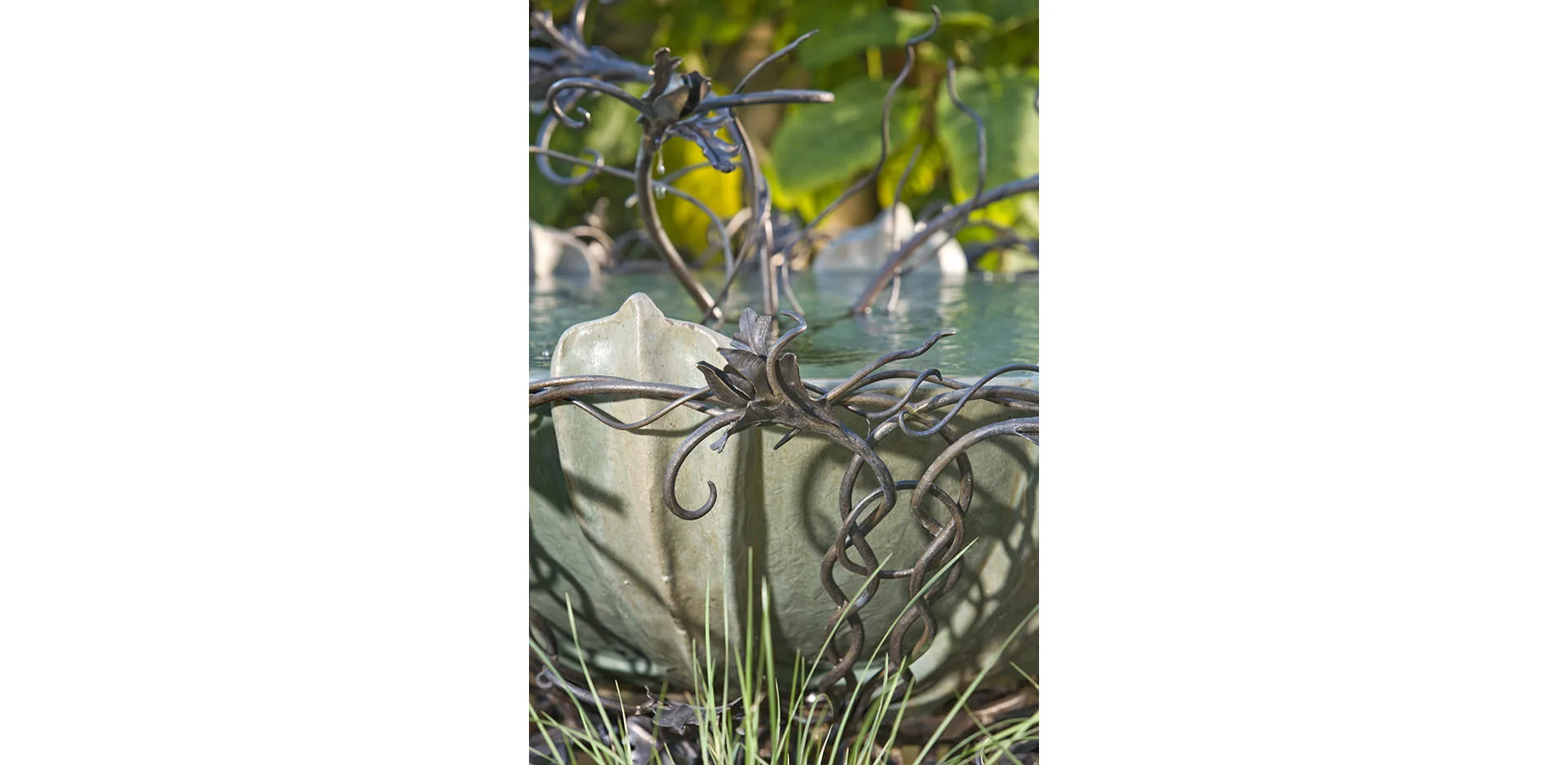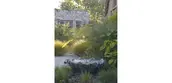Our design focused on the severity of the site and the limited rainfall. We incorporated a number of ideas for water conveyance. Most of the roof runoff is collected and stored in a 42,000 gallon cistern, buried under the driveway. This water is used throughout the summer to replenish the pond, fountains and for irrigation.