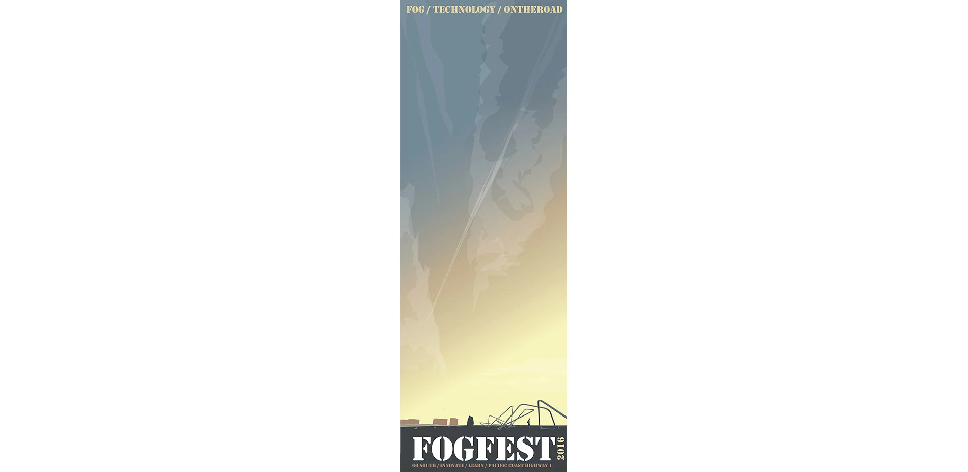Welcome to FOGFEST, the first festival of fog collection in California. Fogfest is the opposite of Burning Man, it is a festival about the individual, where everyone can create and test their own devices to collect water from the clouds. The Festival takes place in Highway 1 (Pacific Coast Highway), a landscape that is well known for the power of its geological features, however Fogfest tries to create awareness about the atmosphere, connecting us with one of California Coast's biggest asset