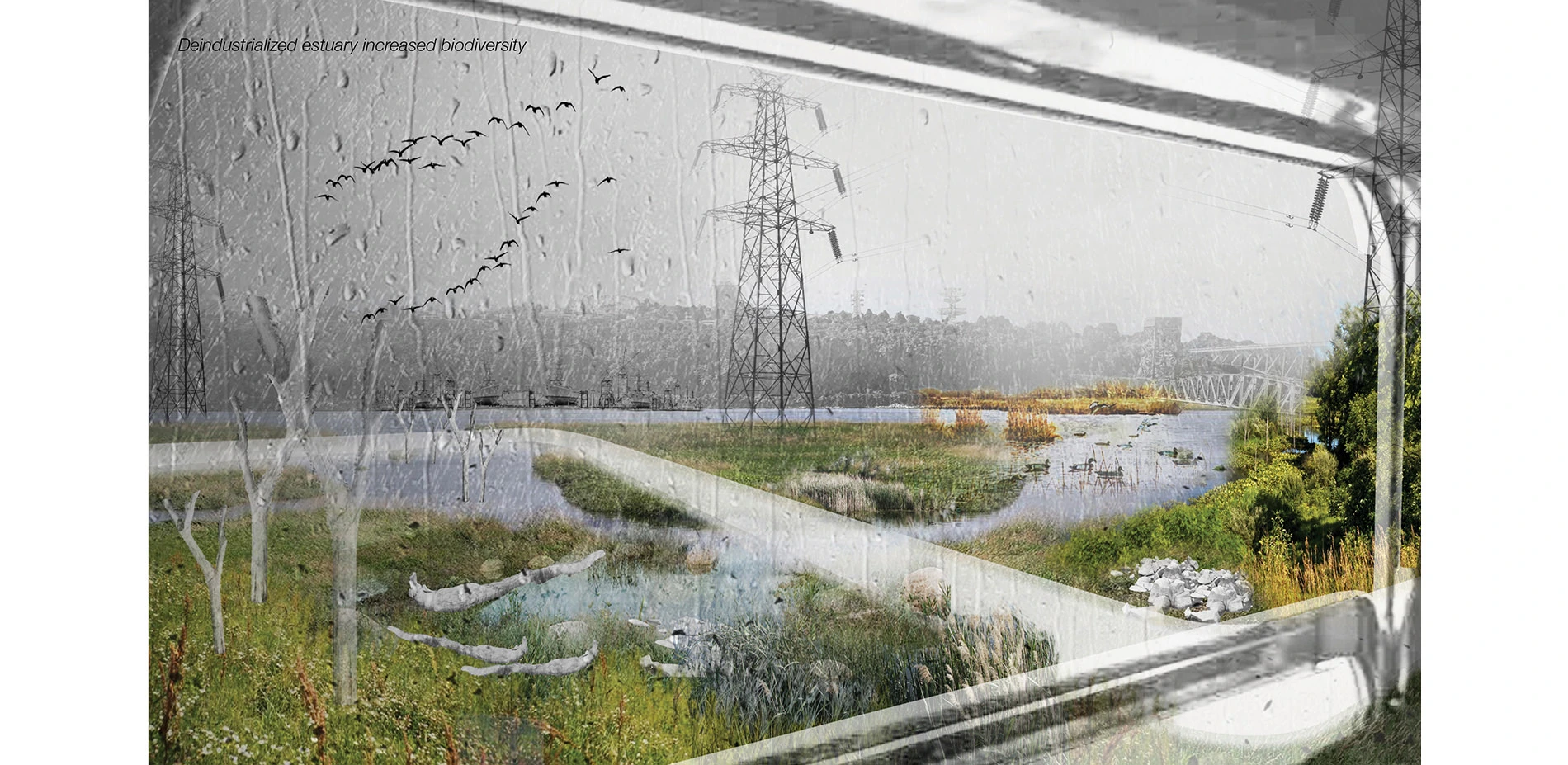 PHYTO_Industry seeks to develop a phased remediation strategy that combines existing industrial land-use with future urban development, revealing the social and ecological potential of the site. Shoreline dynamics and ecology; industrial operation and evolution; historical context and economic development; and in-situ site remediation will drive the creation of a multi-functional green belt that supports resilient shoreline ecologies, urban redevelopment and a variety of social spaces.