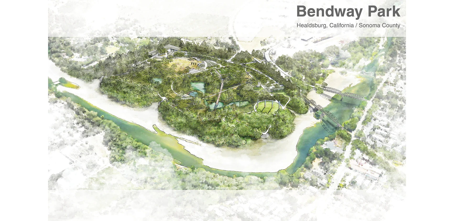 For over a century, large stretches of the scenic Russian River have been dominated by industry, leaving small towns like Healdsburg, California with a broken link between the community and the beauty and resources of the river. With over 60% of the town's riverfront occupied by a gravel processing facility on a site known as the Healdsburg Bendway, virtually no space is available for the needs of the people or environment.