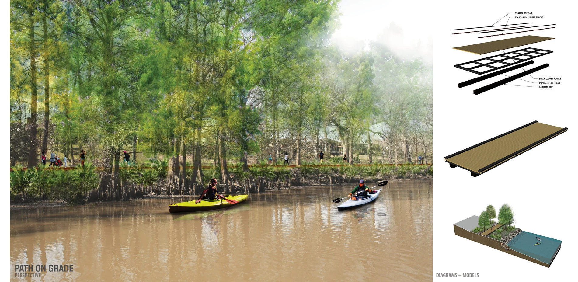 I was captivated by the graphics that explored an innovative river trail program that would connect communities. They provided different examples of what they were dealing with and came up with well-designed solutions. The project, once implemented, would introduce people to places that might otherwise be inaccessible. Quite compelling