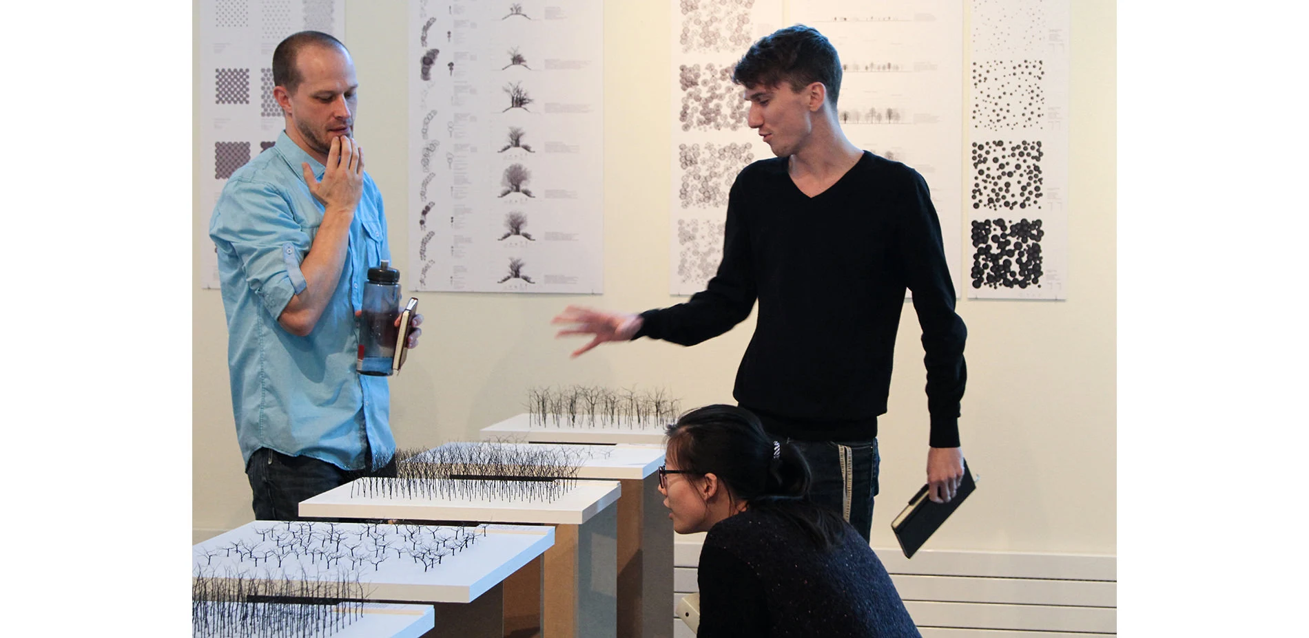 It is the goal of this project to serve as an inspiration to landscape architecture students, landscape architects, allied disciples in engaging complexities of trees in landscapes as significant agents of critical design practice and experience. The process taken to create this exhibition served as a learning tool for understanding these concepts, but the end products in 2d and 3d form are made intentionally visible so that others may learn from what they see. Through this approach to understanding planting design, new investigations can take place to see things in a new way that may enhance our understanding of successful and unsuccessful landscapes from which we currently may only be looking at what we see, but may in fact reveal more upon a closer look.