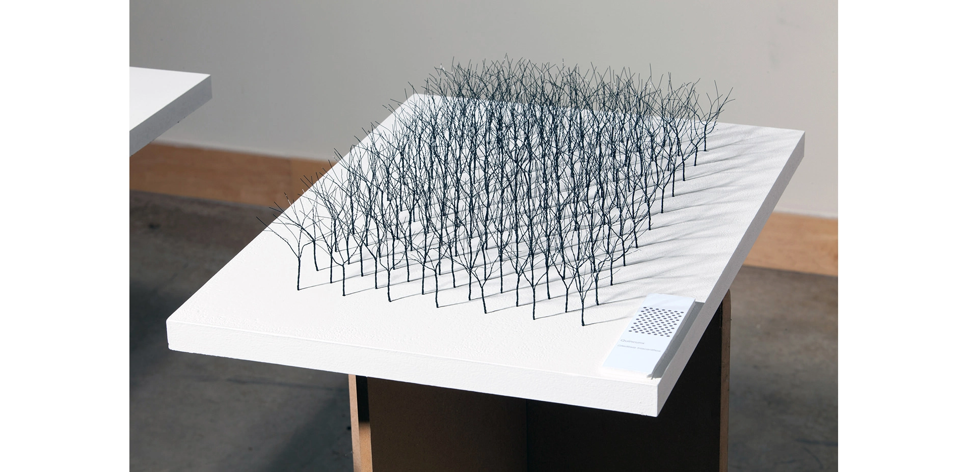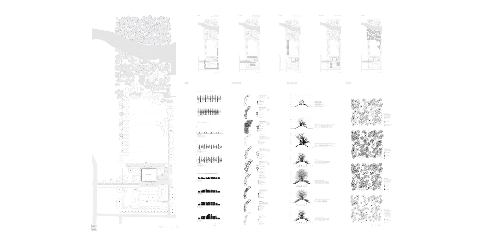 This project is a student exhibition exploring and expanding our understanding and appreciation for planting as learned through investigating Dan Kiley’s most influential projects in the second installation of this curated work, but also augmented by 2d and 3d mixed-media sculptures. The analytical components created specifically for this exhibition evolve to highlight the complexity, beauty and design opportunity in creating spaces through planting typologies using an unique approach to illustrative and physical modeling techniques with over 2,000 trees. Kiley’s work serves as the context and foundation for these studies. Planting typologies are disseminated through research and communication of work that builds off of archival collections of Kiley’s work including diagrams and physical models of phonological or morpohological nuances within tree species through canopy growth, seasonality, texture, caliper, and form among other topics. The project includes a six-week exhibition open to the public, an exhibition catalogue, and a public panel discussion.