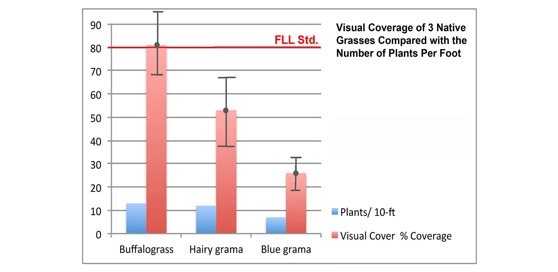 - At LB-P spring sown buffalograss in 6-inch rows met 80% coverage in one growing season.