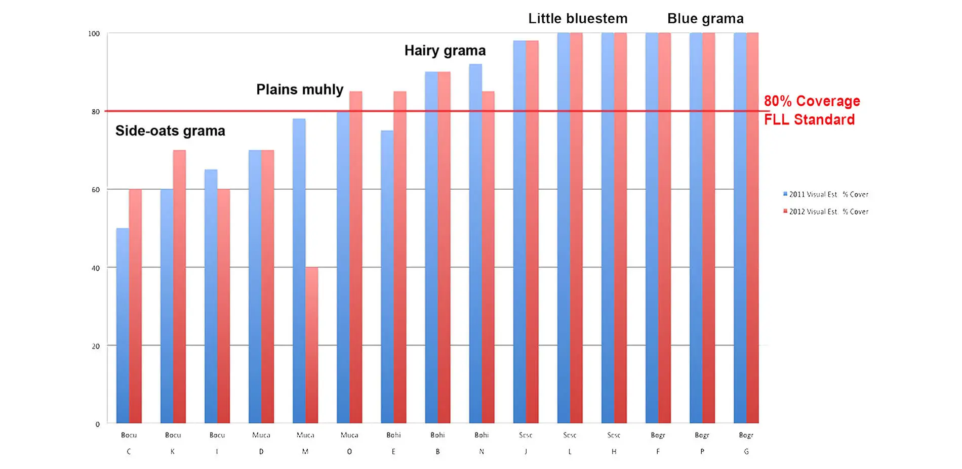 - At ADF Fall 2010 seeding of blue grama was successful but without erosion control it was susceptible to winter scour. At the end of the 2011 growing season, it did not exceed the visual coverage of spring seeding.