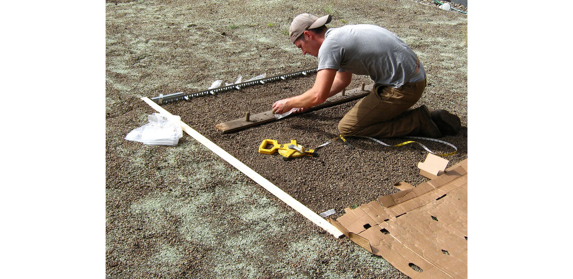 This research investigated methods, techniques, and materials for seeding green roofs to native grasses. Its questions and objectives arose in 2007 when a small green roof planted to plugs of native grasses freely reseeded and during the second year readily filled gaps. That experience led to a series of on-the-roof trials and experiments on 3 different cooperators’ roofs spanning three years. Experiments, observations, and techniques on green roofs helped explore and evaluate a suite of independent variables for planting: 1) season, 2) method and 3) spacing. The dependent variables measured included: 1) plant vigor, 2) visual coverage, and 3) material and labor costs for seeding.