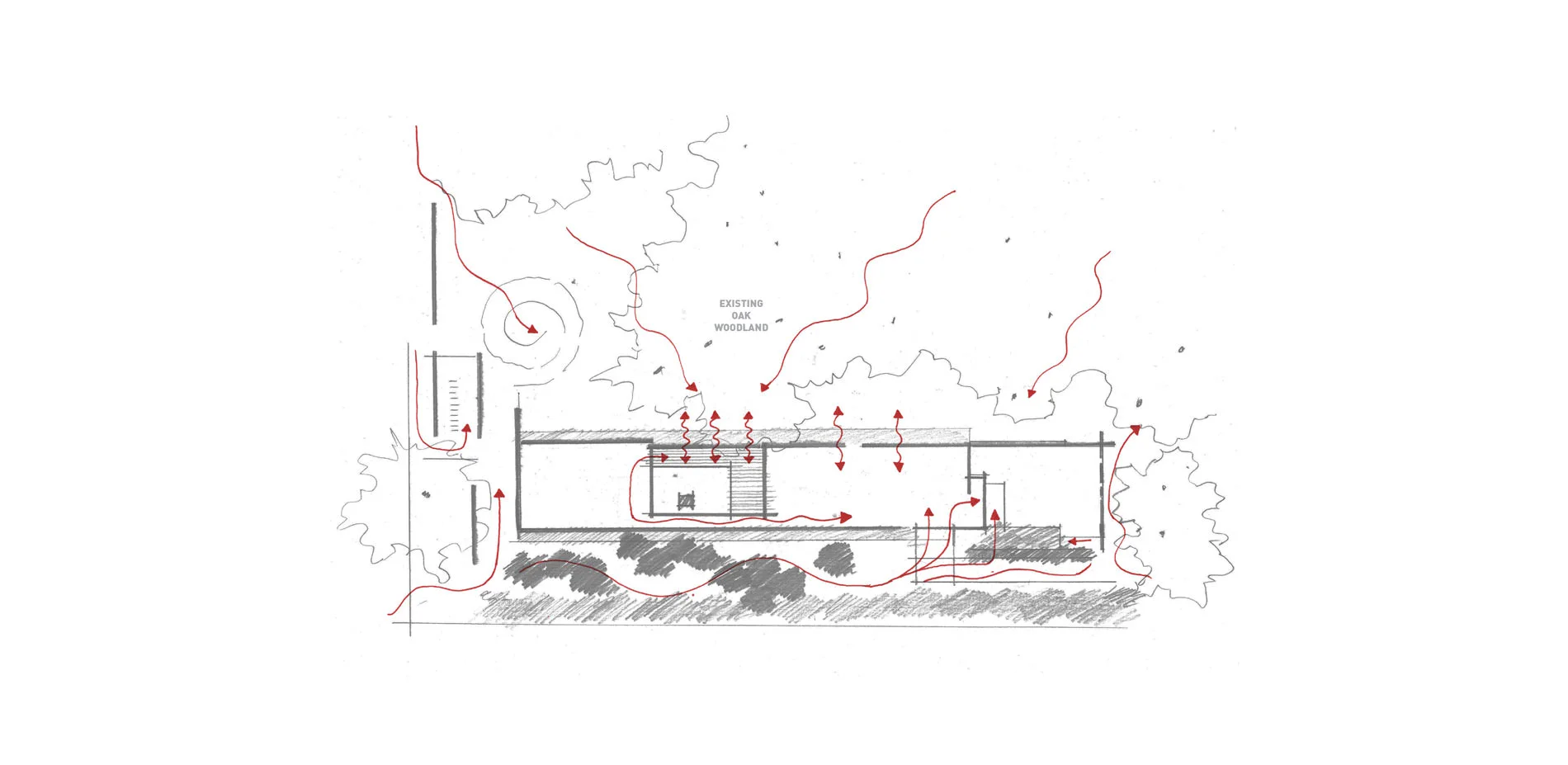 The unique ecological context of the site also strongly influenced the project. The oak woodland adjacent to the site, designated as a salamander habitat, was carefully protected throughout construction. In addition, the site contains a number of native oaks, California pepper trees, and the university’s only Chinaberry tree; the project team worked to design and site the building elements around this sensitive ecosystem. Sustainable principles also shaped the project’s planting design, which consists of low water use and low maintenance species.