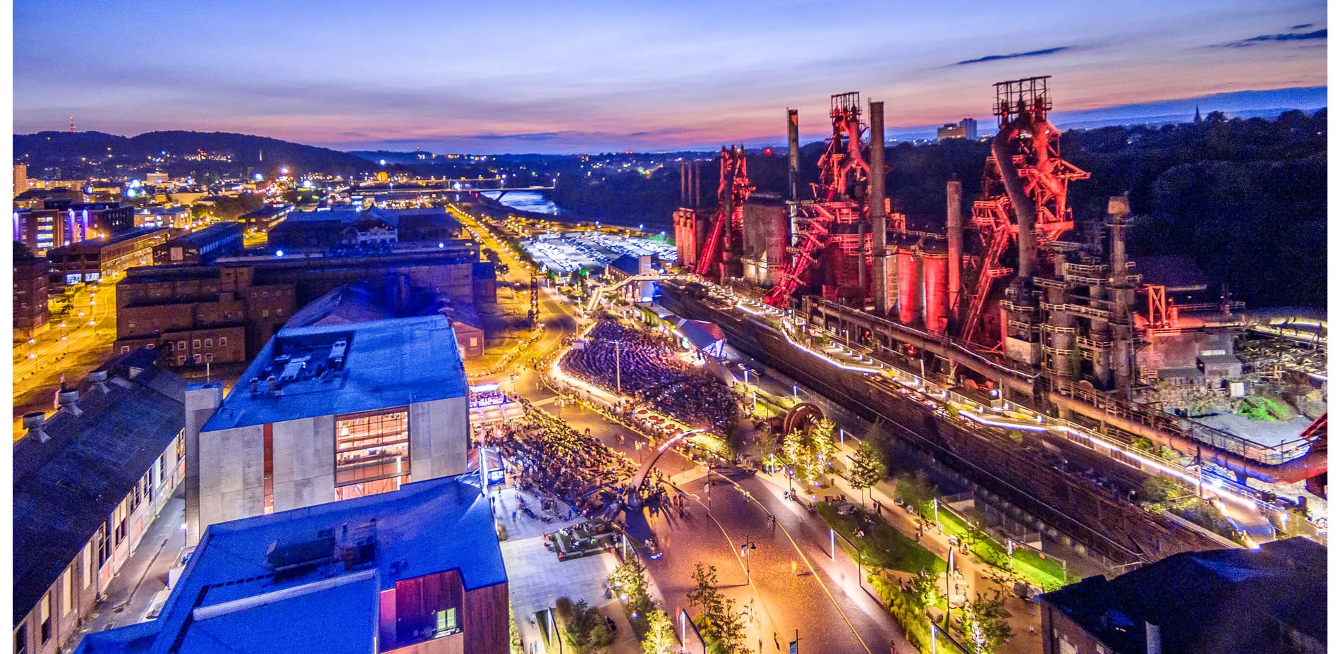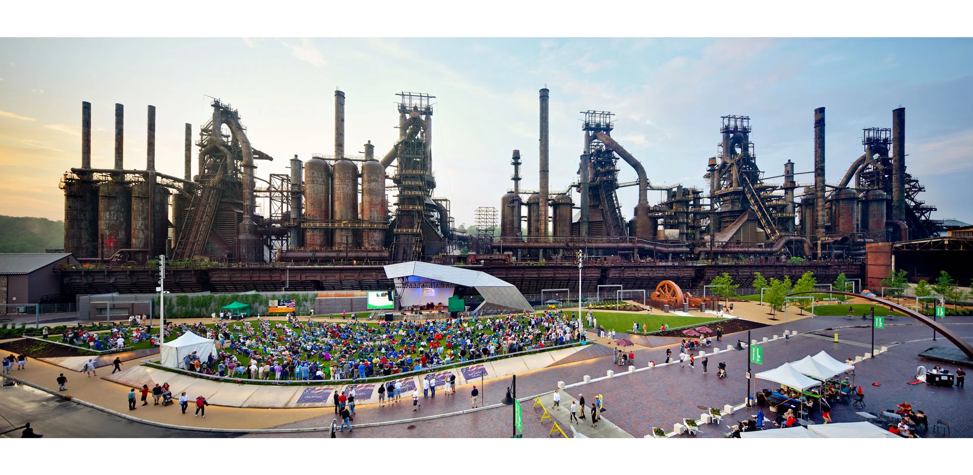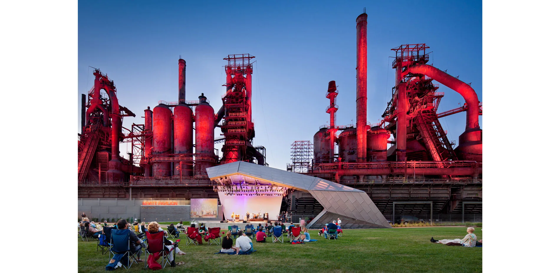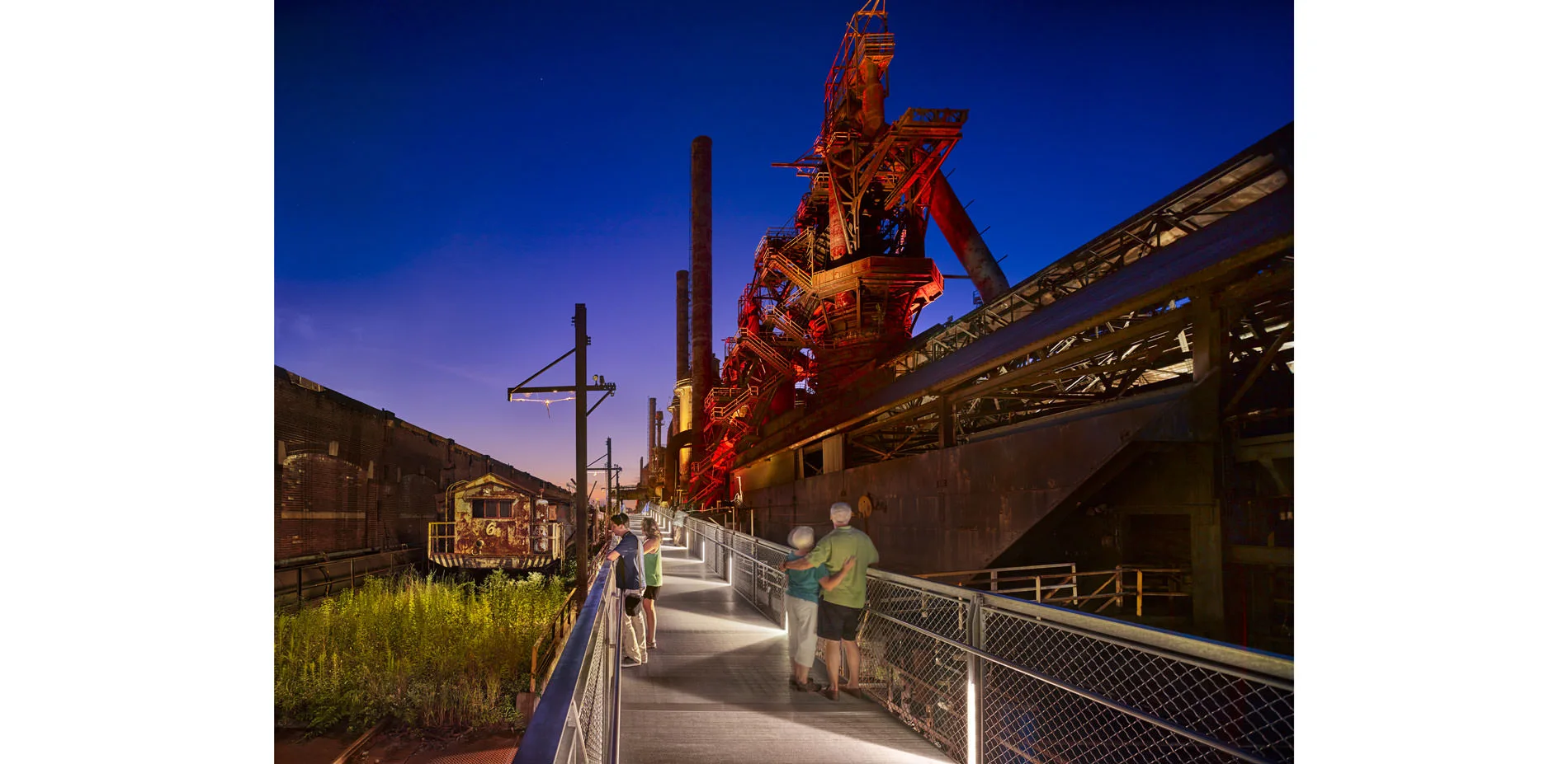 The overriding design intent was to create an extraordinary setting capturing the stunning scale and mass of the SteelStacks as a backdrop for year-round festivals, art events, and music performances. Of paramount importance was the transformation of the site from daytime to evening and nighttime experiences, creating a welcoming public center that draws families and individuals, locally and regionally.