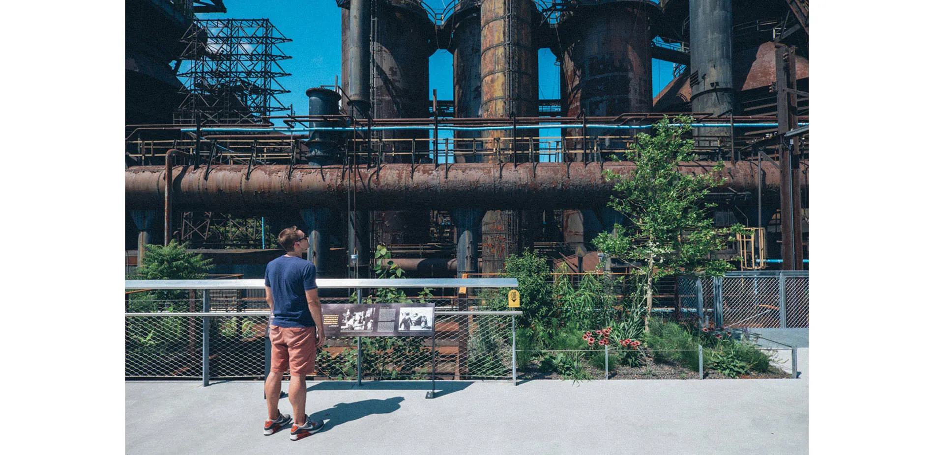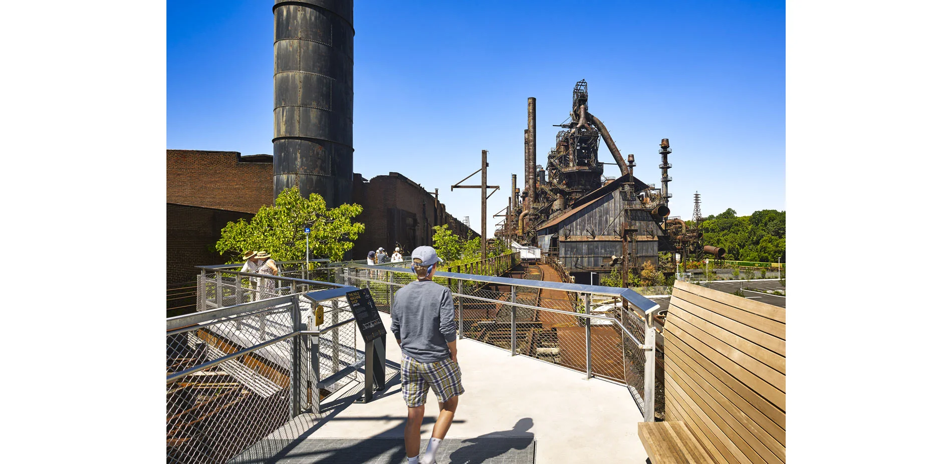 - The Hoover-Mason Trestle, an elevated pedestrian promenade which allows visitors to walk through the industrial archeology of the site along the same path that the raw materials to produce steel were delivered