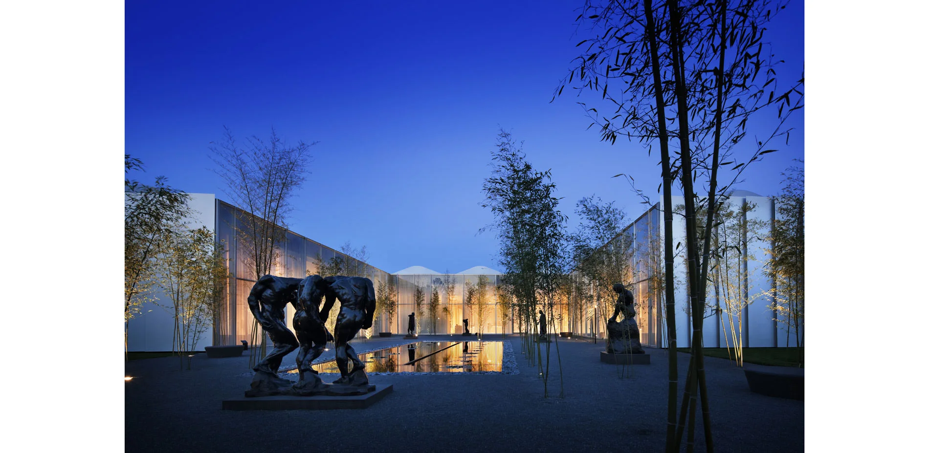 The project was a major component of an ambitious museum expansion that includes a 127,000-square-foot wing housing new galleries. The building, which Architectural Record named as one of the 125 most important works of architecture built since 1891, has an exterior made up of 50% glass, which facilitates a strong interplay between its interior and the surrounding landscape. The landscape architect supports the primary architectural concept of incorporating natural light into the interior galleries with a series of exterior courtyards that cut into the rectangular form of the building. These spaces effuse an exceptional quality of light and reflectivity, and beautifully blur the line between gallery and landscape. The landscape then transitions into five acres of adjacent gardens that provide an immediate setting for both the building and a series of works by renowned sculptors such as Auguste Rodin and Henry Moore, as well as contemporary works by Roxy Paine and Ursula von Rydingsvard. The design reflects an intentional and disciplined restraint that beautifully situates the sculptures within their context.