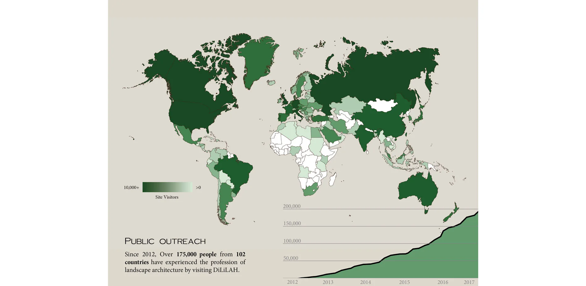 - DiLiLAH has been accessed by over 175,000 visitors from 102 countries. Several university landscape architecture programs in the United States have utilized DiLiLAH to improve the educational experience of their students.