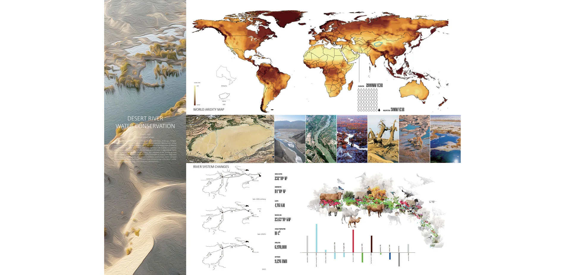 The arid zones on the Earth cover 30% or more of the global land surface and support an ever-growing human population. People living there are always facing drought problems. Rivers in these zones often play a critical role in people’s life, landscape changes, ecological evolution and socio-economic development. Besides the global warming, many dry land rivers have already been strongly influenced by the accelerated expansion of human activities in arid regions with the increased population, or even are under significant threat from various human interventions such as land reclamation and flow regulation. As riparian ecosystems are disturbed, people’s lives are affected and desertification is aggravated.