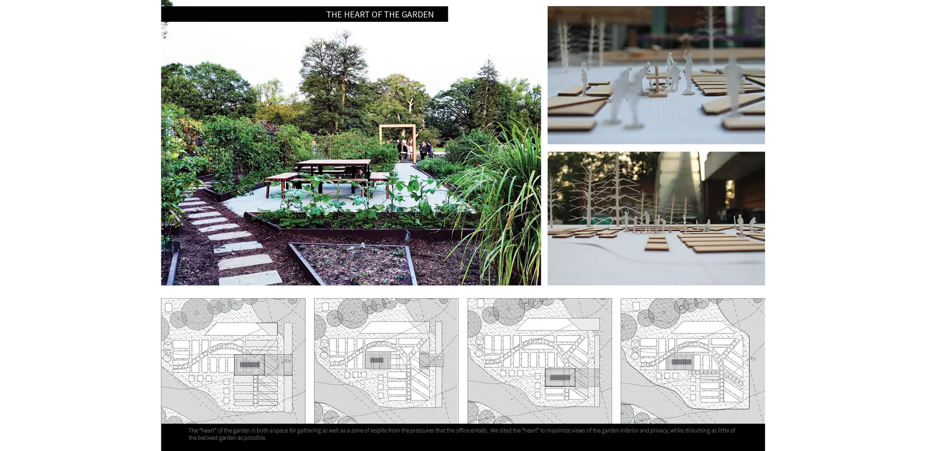 The “heart”, or central gathering space of the garden is a space for groups to come together, as well as a private respite away from the main house. We sited the “heart” to maximize views of the garden interior but also to provide privacy, while minimally disturbing the original footprint. The new path provides a widened path that provides an accessible and more comfortable pathway to the garden heart. Bluestone pavers lead from the entry threshold to the heart of the garden. The entry arbor sets a threshold and provides a single point of formal entry into the garden; it also employs the process of “flitching” - sandwiching a thin plate of steel between two wood pieces. The wood softens the palette and adds texture, while the steel supplies the structural strength. Like the 'E Pluribus Unum' table, the Arbor is composed of steel and heritage woods. Materiality