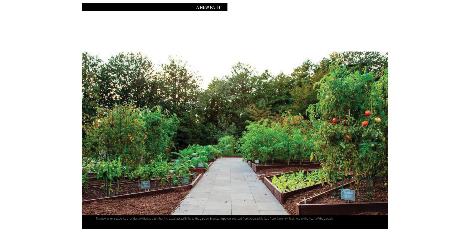 While the spatial designs were most important to the continued success of the garden, the materiality of these enhancements became a crucial part of its legacy. Just as many of the plants in the garden grew from heritage seeds from around the country--from Thomas Jefferson’s Monticello estate, to various historic farms--we felt that it was important to utilize use salvaged materials from important American places. Materials are intentionally sourced from near and far, representing the diversity of climatic zones, ecological communities, and agricultural and craft traditions that constitute the nation, a celebration of uniqueness and commonality.