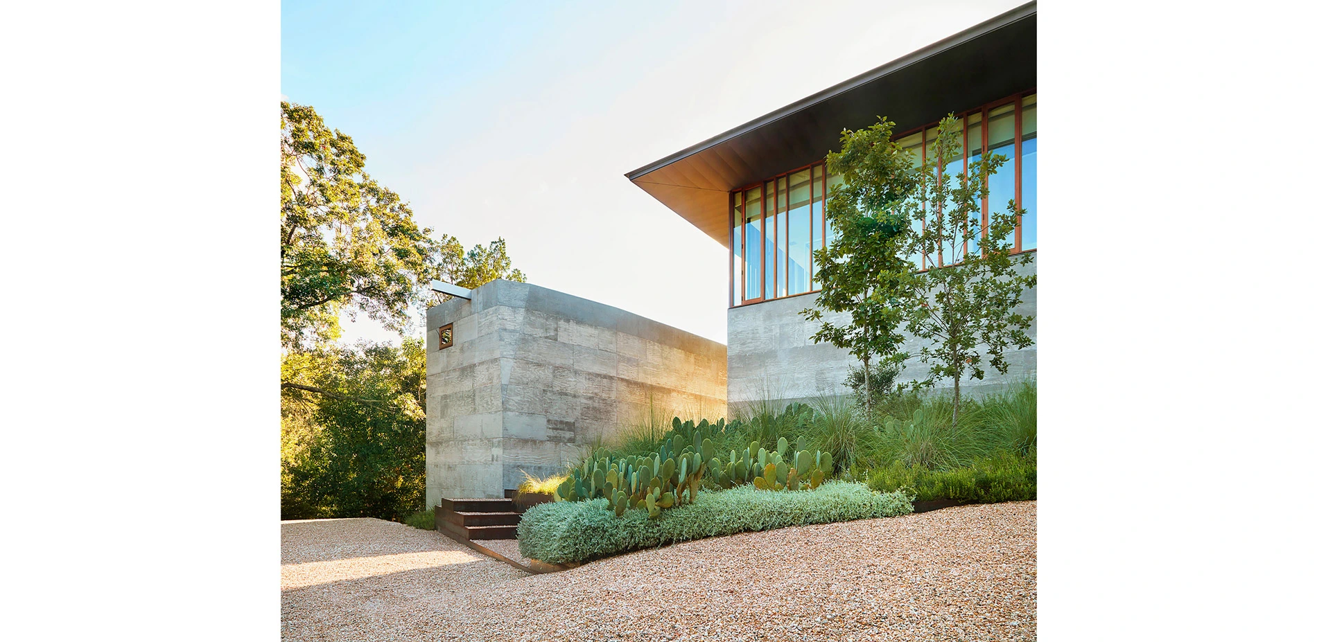 The restrained material palette underscores the elegance of the architecture and highlights the grandeur and simple beauty of the Texas landscape.