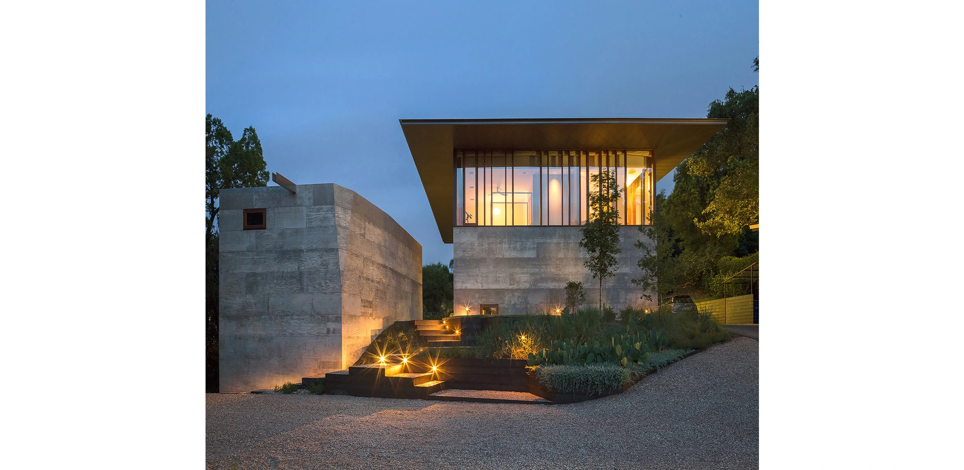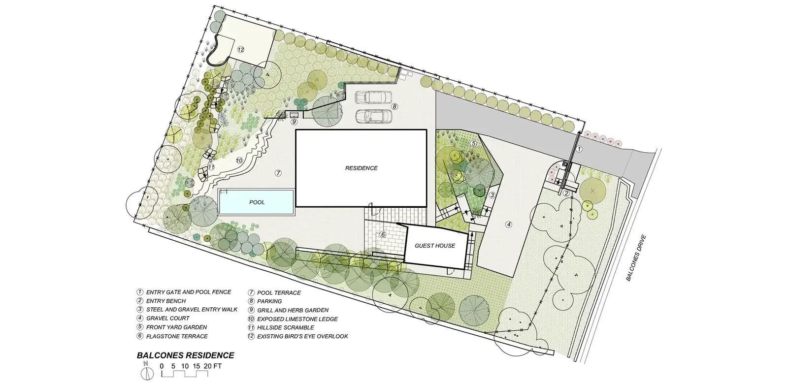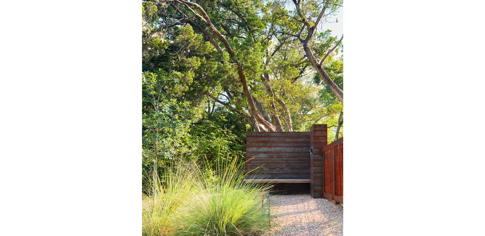 Centered around creating magnetic site circulation and garden moments in the negative spaces around the architecture, the design program focused on vegetative and hardscape materials that direct the experience of the space through line and texture. The architecture acted as both an anchor and frame around the refined native landscape. The landscape program became a judicious choreography of movement between the buildings.