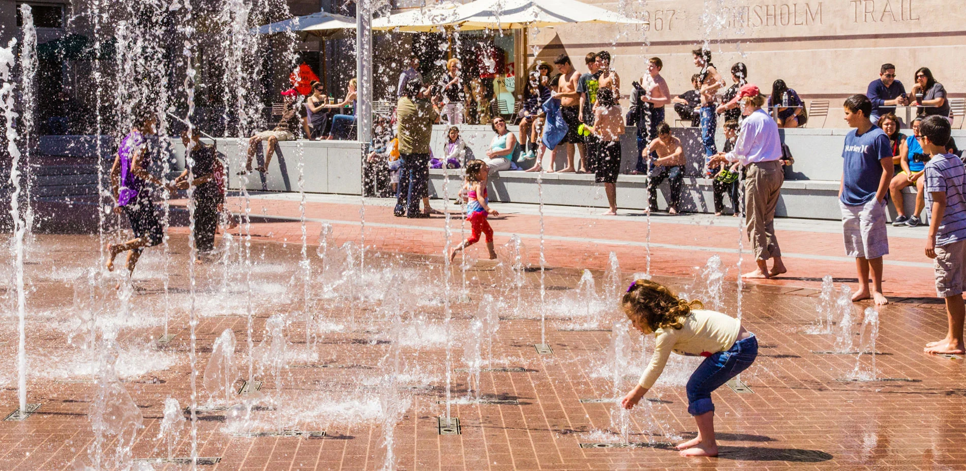 Texans are famous for a charismatic hospitality that blends traditional values with a genuine good time. Fort Worth's Sundance Square Plaza is a prism for this practice at a large scale, a place where everyone can feel at home. The former parking lots on Main Street welcome thousands of visitors weekly to a dynamic tableau nestled within the rich architectural detailing of the city. Equally welcoming on a peaceful morning or a lively evening, the Plaza's water and light form the backdrop for public life. Its interactive fountains and giant, operable umbrellas provide opportunities to play and relax unlike any other in the surrounding area, complementing a diverse community program that revels in everything from daily exercise to festive annual celebrations. Forming one of the safest, cleanest, and most walkable areas in the city, this spirited social hub is known as the Heart of Fort Worth.