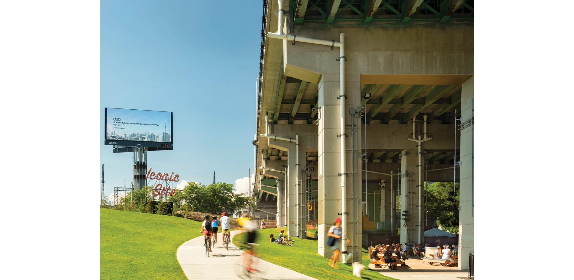 The Bentway re-imagines Toronto's most divisive symbol of 20th century transportation planning as a new model of shared public terrain able to capture the soul and spirit of the city. This project could only happen now because of a genuine need to be resourceful, innovative and bold with how we think about public space in our rapidly densifying cities. The project creates a 7 acre pioneering urban landscape conceived to support new forms of creative expression and public experience.