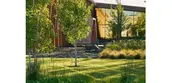 Receiving an average of eight inches of rain per year, the site accommodates sustainable water use. All stormwater is collected and infiltrated onsite, reducing irrigation demand for the plant materials. Irrigation water is from non-potable sources. Soils and stones are from onsite or nearby local sources. Native species selected from the nearby riparian corridor and the surrounding hillsides improve habitat and require little water. The layout is evocative of both natural patterns and the ordered row planting of the site's agricultural past. Strategically placed trees, more densely planted on the south side, and the agricultural shade structure reduce the heat island effect.