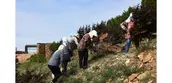 Eco-friendly Construction and LandscapingThe landscape architect mined elements from the local site, including excavated rocks and soil, abandoned planting machinery, and local natural plants; these were repurposed in the new landscape structure and pavement. The recycled agricultural machinery elements from the yellowhorn farming and natural rocks excavated for construction add historic character to the landscape. To build a resilient landscape in this cold, dry, and windy climate, we took our cues from the local drought-tolerant house construction method that uses cyclopean masonry with rammed mud and natural stones, and planted native species (sea-buckthorn, miscanthus, and yellowhorn) around or in the structures. This six-month landscape construction process involved no professional construction teams, but rather used only local resources and village residents.