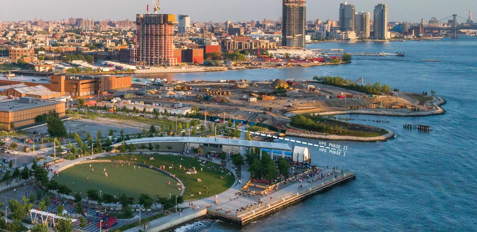One of the city's most ambitious and complex developments in decades, Hunter's Point South Waterfront Park Phase II aspires to be a new kind of project. With its final phase complete, Hunter's Point South Waterfront Park stands as a global model for social, cultural and ecological resiliency at the urban waterfront. An aspirational and innovative blending of landscape, architecture and infrastructure has transformed this contaminated rail site into a verdant parkland teeming with community life and its restored riverain habitat.