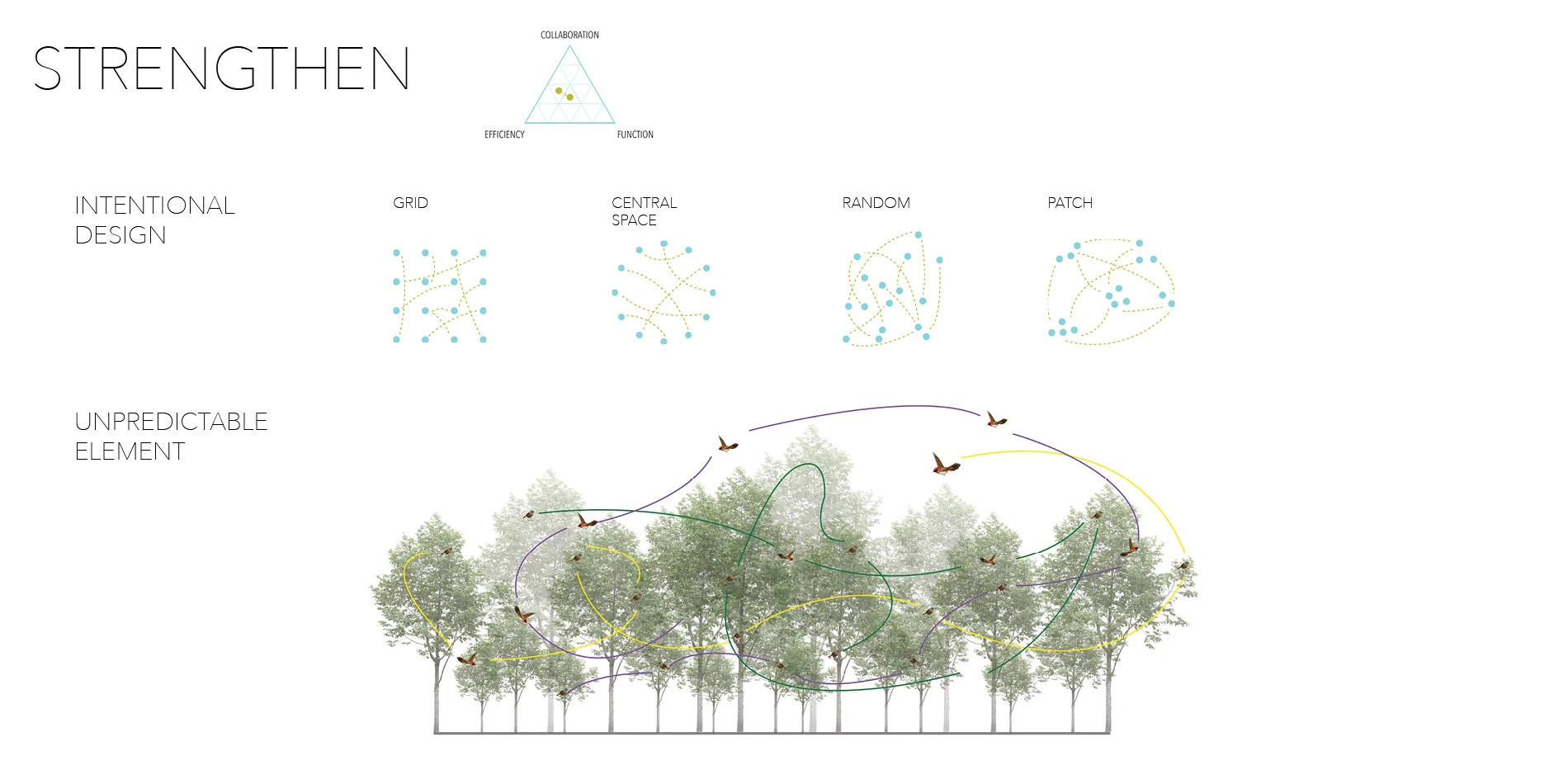 This test determined an efficient and collaborative direction. In order to establish a functional design, the timing of the intervention must coincide with the desired seeding or fruiting plants and with the birds that disperse them. These prototypes will inform an intentional design intervention at the landscape scale, or, the landscape with equivalent ecological conditions. The number, size and location will influence the animal function patterns. This research also showed potential to test prototypes for specific bird species to disperse specific plants. The design at the landscape scale will continue to be directed and maintained by animal and site response.