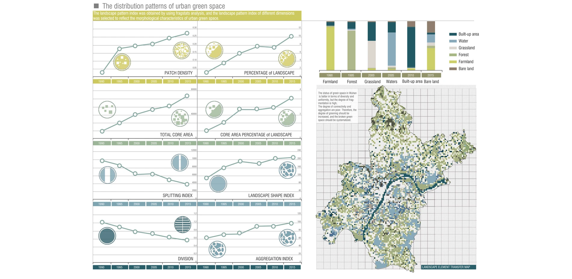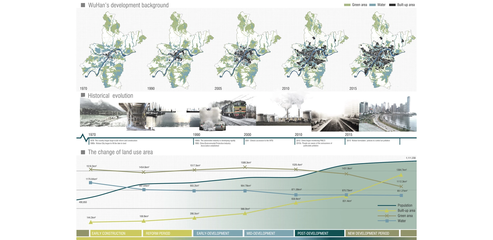 The UN Environment Agency published a survey report in May 2019, which showed that about 7 million people died of air pollution every year, and most of these unfortunate people or areas with serious air pollution are from Asia, Africa, and Latin America. China, but developed countries have also suffered from air pollution during the development process., such as the 1950 London smog incident and the 1943 Los Angeles photochemical smog incident. Air pollution has become a global environmental problem, and the most harmful and direct air pollutant to the human body is the air inhalable particulate matter., referred to as PM10 and PM2.5. It is the invisible killer of the city and is gradually encroaching our healthy life. We try to use the landscape garden approach to cope with the deteriorating air environment, and hope to reduce the airborne particulate concentration in cities through a scientific, implementable urban green space network planning method that can be promoted to the world. This is the vision of our team and the strong desire of countries and cities that are polluted by airborne particulate matter. Fortunately, this seems to be achievable. We chose Wuhan, a city in China as a research and planning site, because it has developed extremely rapidly in the past 30 years. The population of the city has reached 11 million people and the nature of land use and the number of cars have changed drastically, which has caused airborne particulate pollution to be extremely serious.
