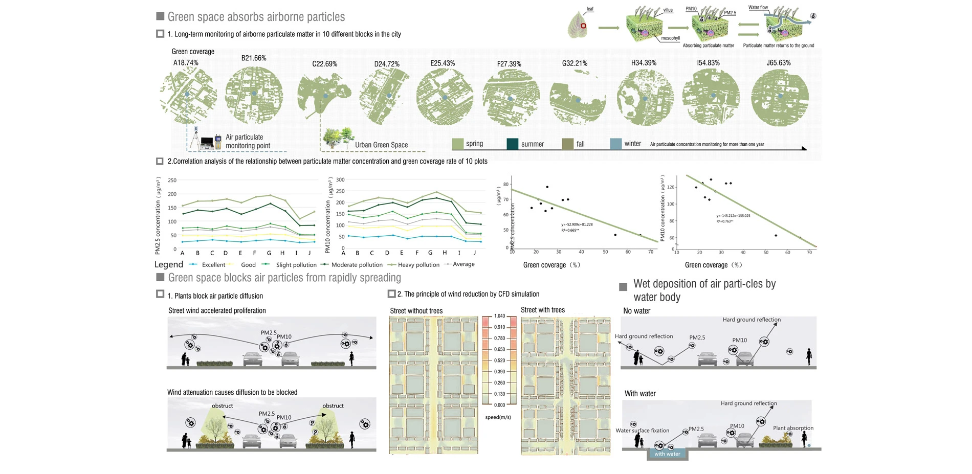 For decision makers around the world, urban green space can reduce airborne particulate concentrations is unacceptable. And in developed countries and regions that have not experienced air particulate pollution, this is more difficult to be accepted.Therefore, we conducted a year-long environmental monitoring experiment and computer simulation urban scene in Wuhan, analyzed the research results and used powerful conclusions to dispel people's doubts and proved that urban green space has the effect on reducing the concentration of airborne particles.