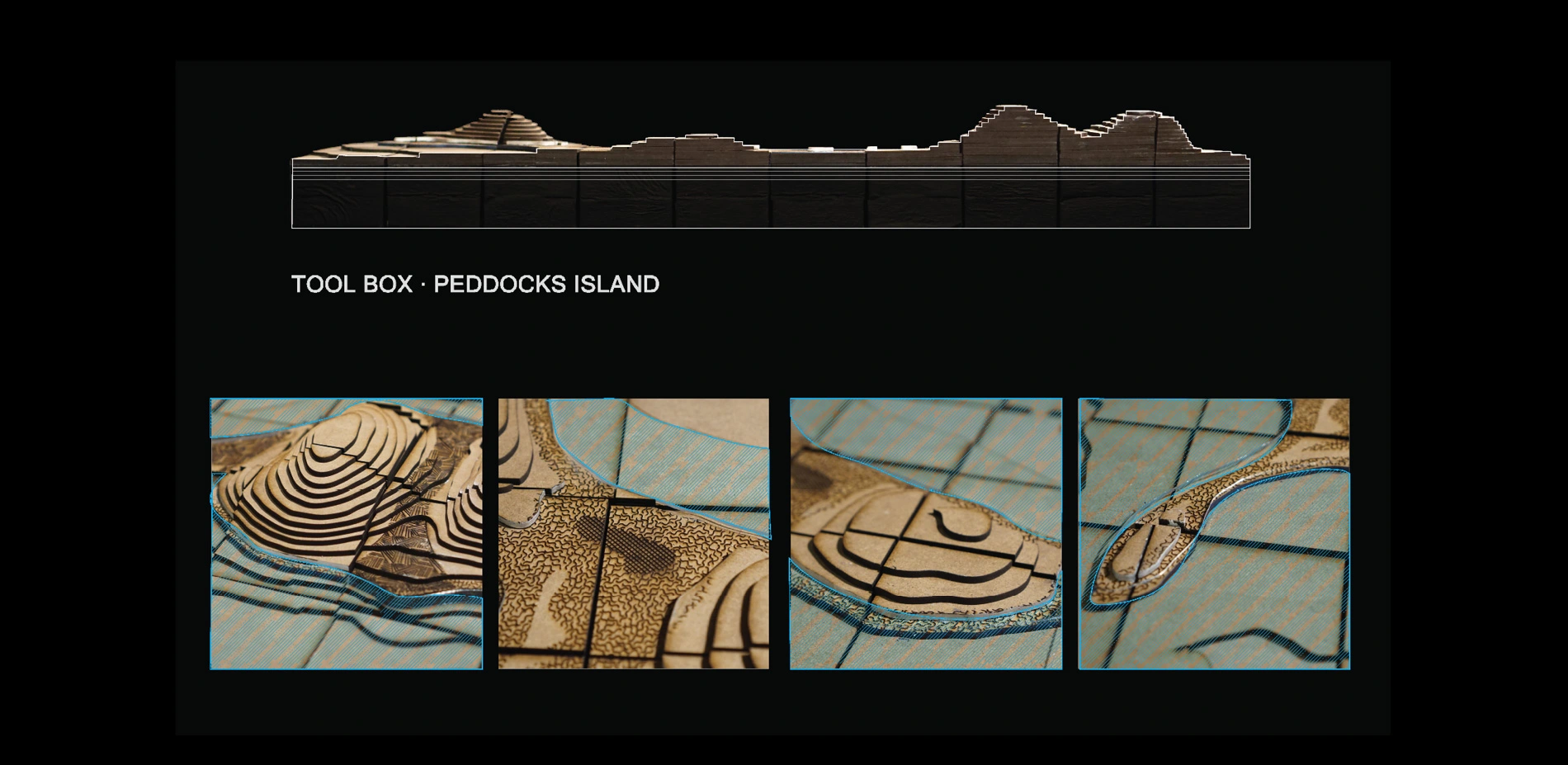 A total of five different actions, which are connected - flip - block - mound - stilt were applied to the site. By remixing materiality, texture, structure, and contour, new forms were generated to achieve the protect and adapt stage of the site. Meanwhile, a novel landform is extracted from the morphology of fragments like seashells and rocks, and their traces from overwash. The typologies of the new landform provide a dynamic service that harnesses the existing potential of the site and enhance its resiliency in different environmental conditions.