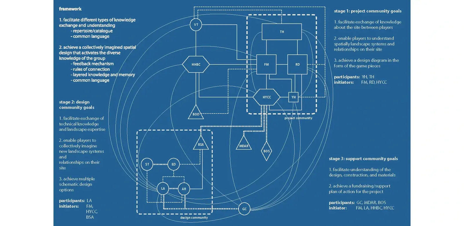 There are three different communities that I've identified as the core audience for the game: the Project Community, who interacts with the site on frequent basis and includes both designers and non-designers as well as community leaders and youth; the Design Community, who include, architects, design students and educators, and landscape architects in both the private and public sectors; and lastly, the Support Community, who are generally off-site, but a critical to the functioning and operation of the site, including non-profit organizations, such as Haley House Bakery Café, as well as volunteers, contractors, landowners, and grant funding agencies. Within each community, the playing of the game starts with a facilitator who likely knows how to play the game, can get people together, or who just want to have fun. As in most games, like the The Landlord’s Game (aka Monopoly), the facilitator or "banker" is decided collectively. These games are meant to be played frequently, formally, and informally, with or without designers throughout the life of the project—real or imaginary.