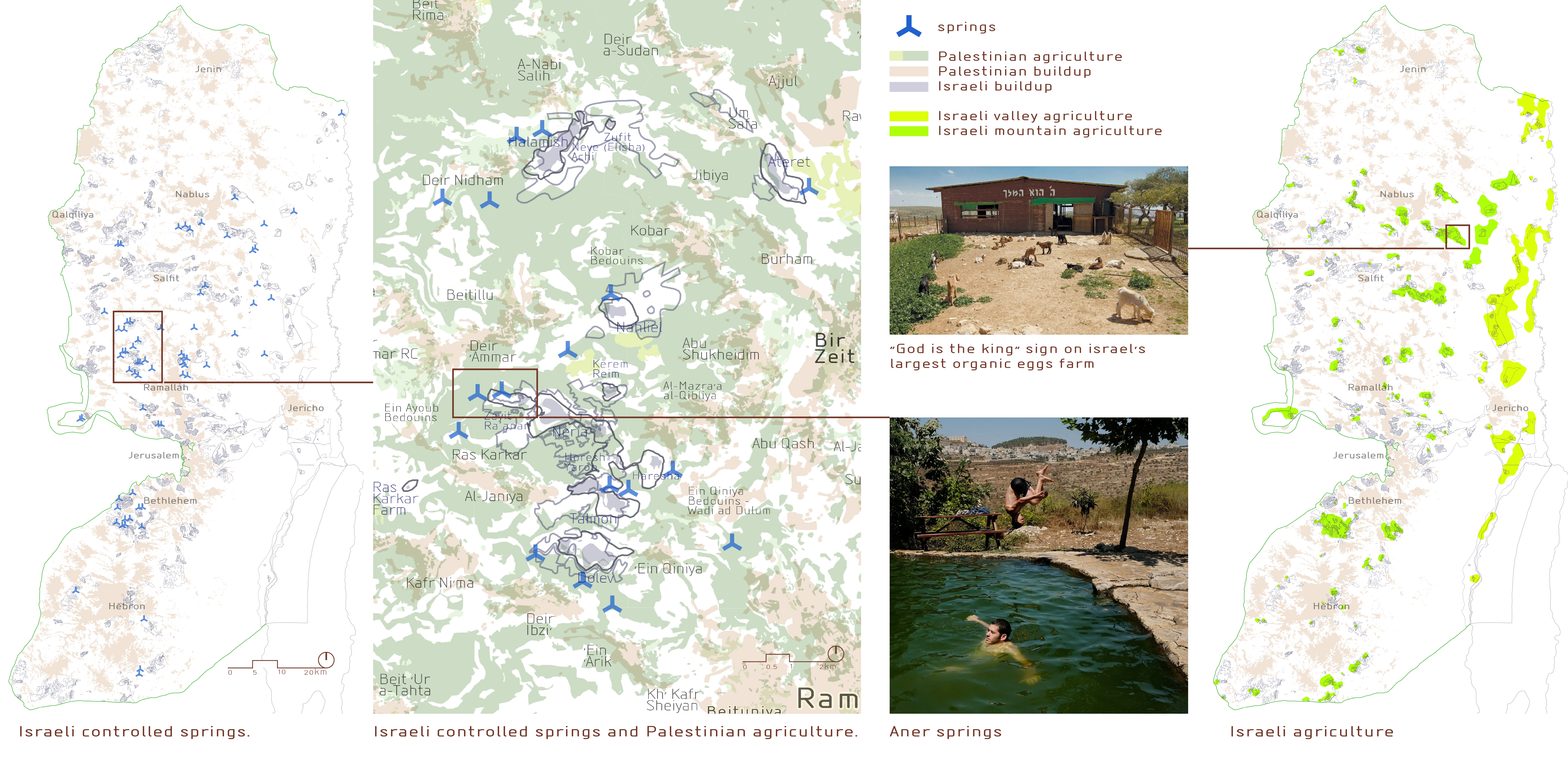 The conflict over the West Bank is a conflict for the mountain, between the Jordan valley and the coastal plain. It is a conflict for myth and land – landscape. The research is based on an historical study, analysing the movement and settlement of populations between the landscapes of the mountain and the plain, and the territorial expansion based distinctly on agricultural open spaces - "The line of the furrow will determine the line of the border". We are also constantly mapping the present distribution and densities of the two populations, and study how they are affected by historical and current border proposals.