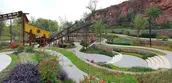 Quarry No. 3 is bordered by the cliff on three sides and was designed as a delicate rock garden. The abandoned soil and gravel on site were utilized as the base of the garden’s subtle landform, with planting soil wrapping its surface. A moderately-sized terrace garden is designed near the main road, creating a unique desert plant landscape. The gentle-sloping section in the center consists of a dry garden, while the southern concave section showcases hygrophilous rock plants with water cascading into the lowest pond. Two platforms with different elevations are constructed at the edge of the concave area, where people can enjoy a charming view of the garden.