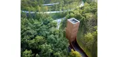 A continuous and integrated path network connects retail, underground commercial areas, and cultural spaces with park features and streetscapes, allowing for smooth transitions between. Main entrances are located within a 5-minute walk from subway stops or public transportation, enhancing accessibility for the Shanghai area. All land bridges and paths are graded to meet ADA standards and special features are designed to ensure universal accessibility for people of all abilities. A nature playground features a series of custom elements constructed from local organic materials, including a unique “Caterpillar Tunnel” made out of bamboo by local craftsmen, alongside a “Bamboo Cocoon” that creates a cozy woven-bamboo space encouraging free play. -