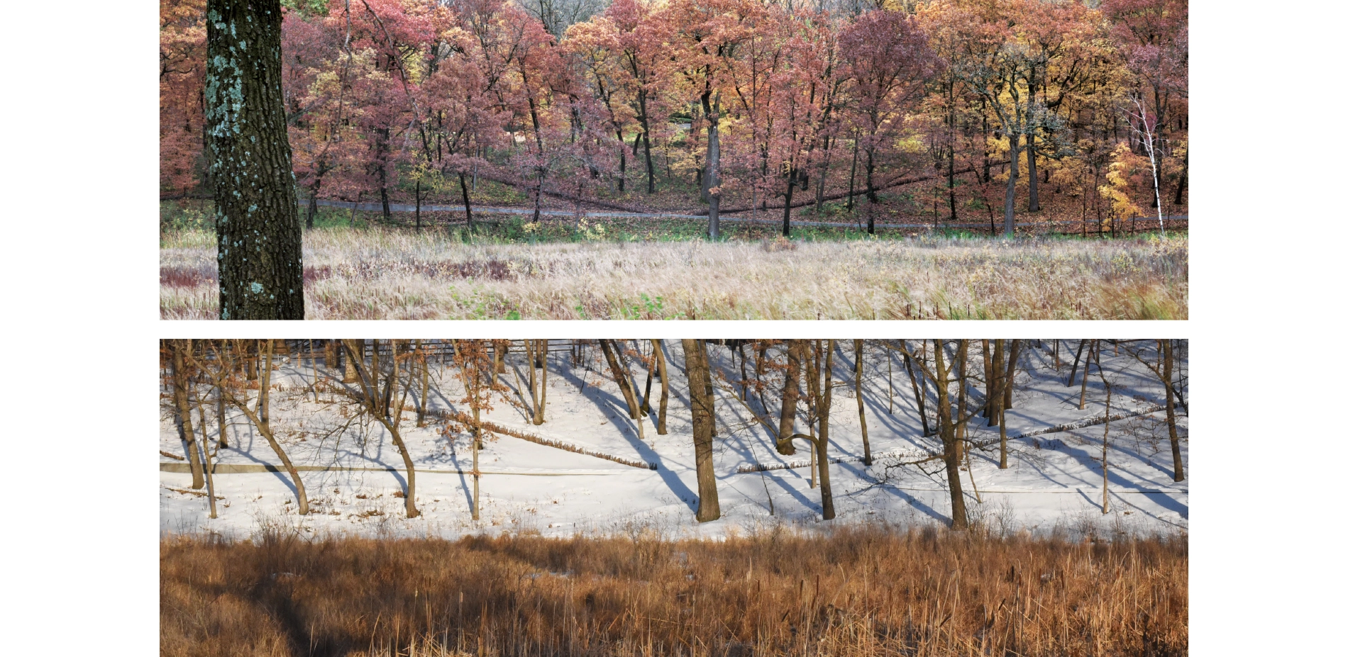 A mile-long system of interconnected trails and boardwalks provides accessible circulation through 22 acres of restored landscape. The paths glide over wetlands, traverse the oak savanna, and weave through the maple-basswood forest, and provide access to the lake. The paths are laid out in straight lines that avoid mature trees, carefully designed to minimize ecological disturbance and maximize user experience. Additionally, this linearity exaggerates topographical changes characteristic of the glaciated lake region.
