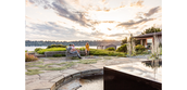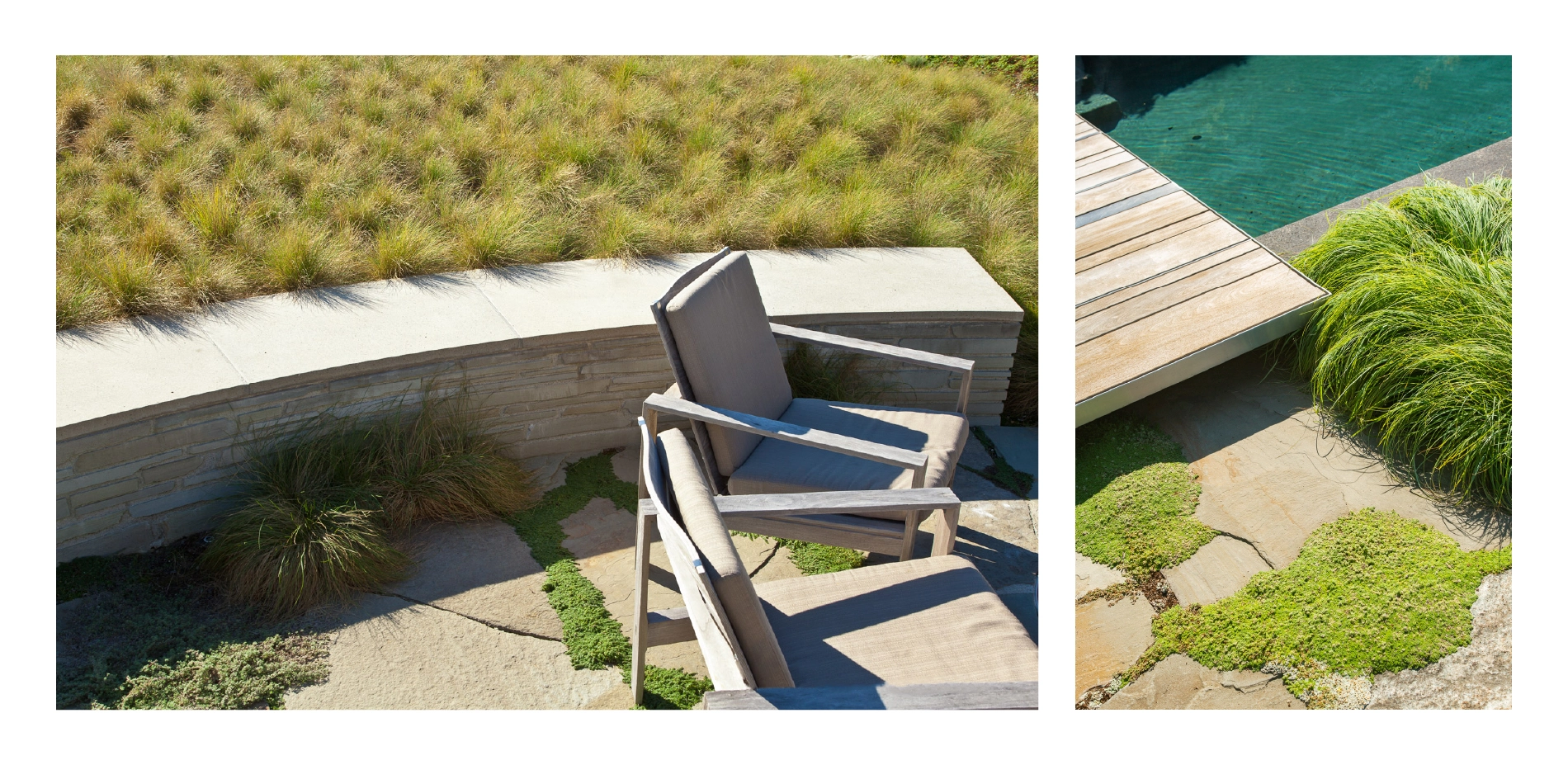 Beginning at the property's entrance, the eye is drawn to compass points embedded in stone that encircle the lawn. The circular form is repeated lakeside via sweeping curves leading to the Sunken Terrace - dramatically pierced by the acute angle of the Pool.
