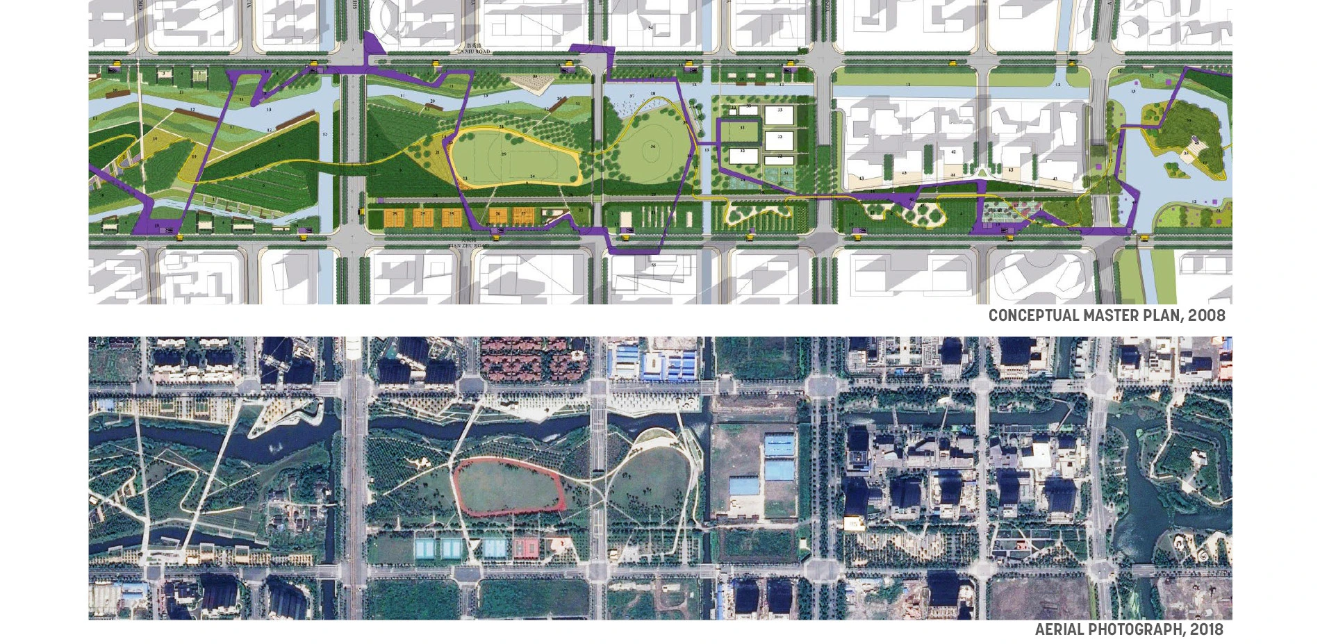 Urban expansion is impacting nearly every city in Asia. When limits of density and space are reached, planners and designers are confronted with the question of how peri-urban areas can be co-opted to augment the city center. Jiading, a high-density mixed-use district on the outskirts of Shanghai with a population of 155,000 people, is a prime example. The satellite of a major metropolis, it is marketed as a neighborhood with fewer crowds, better amenities, and a healthier environment. Bolstering its case for livability is the 70 hectare (173 acre) Jiading Park, which was envisioned as the catalyst for the district’s growth and built prior to the surrounding development. Today, Jiading Park is a beloved open space in this rapidly expanding precinct and is at the core of Jiading District’s identity and ethos.