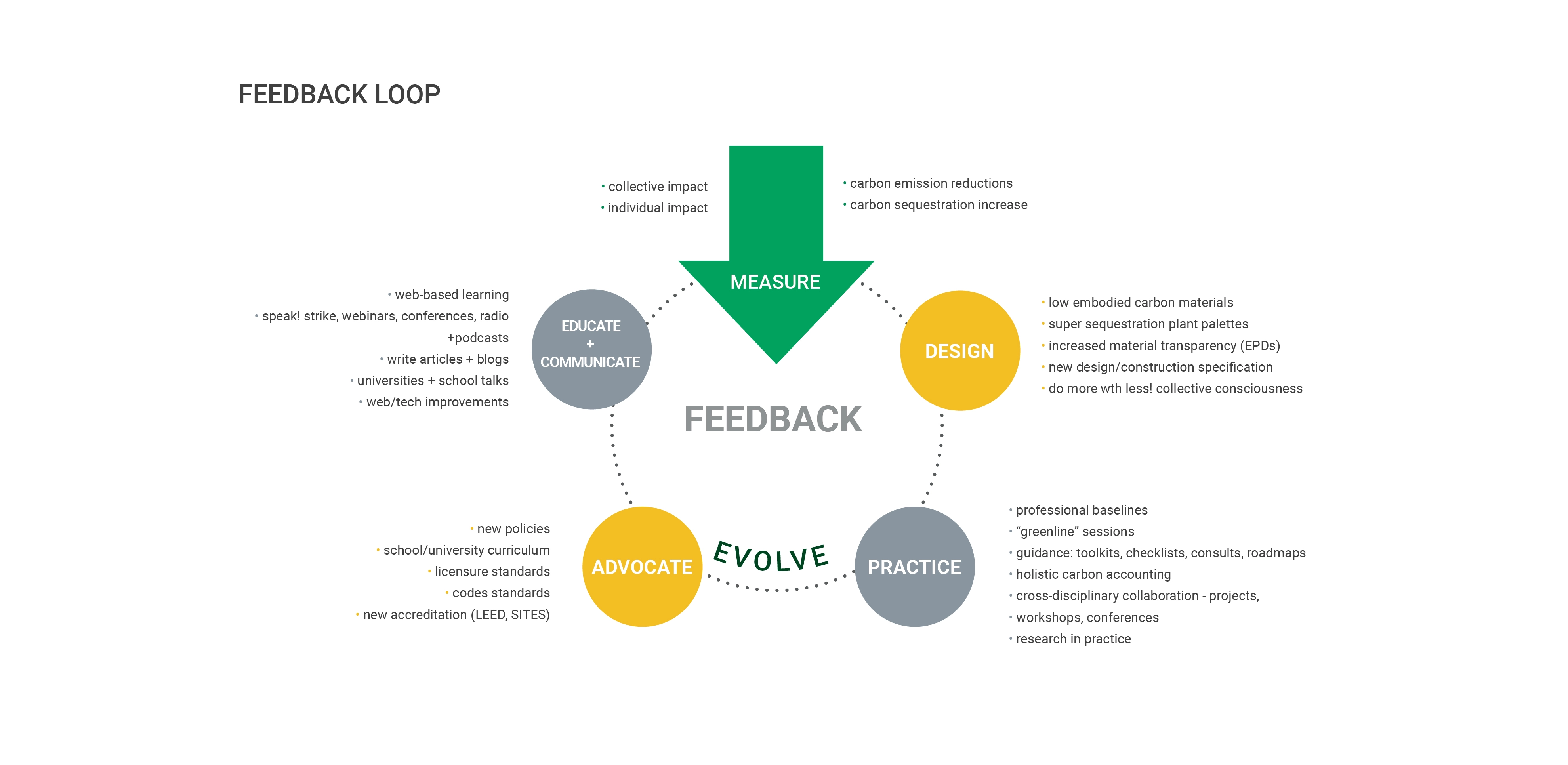 By measuring carbon impacts collectively for the first time as a profession, landscape architects can initiate a feedback loop that informs design and the resources needed to evolve our practices. By requesting EPDs on products and materials, we will collectively signal the importance of carbon footprints to our suppliers. Information collected will inform new policies, standards, what we teach, and how we communicate.