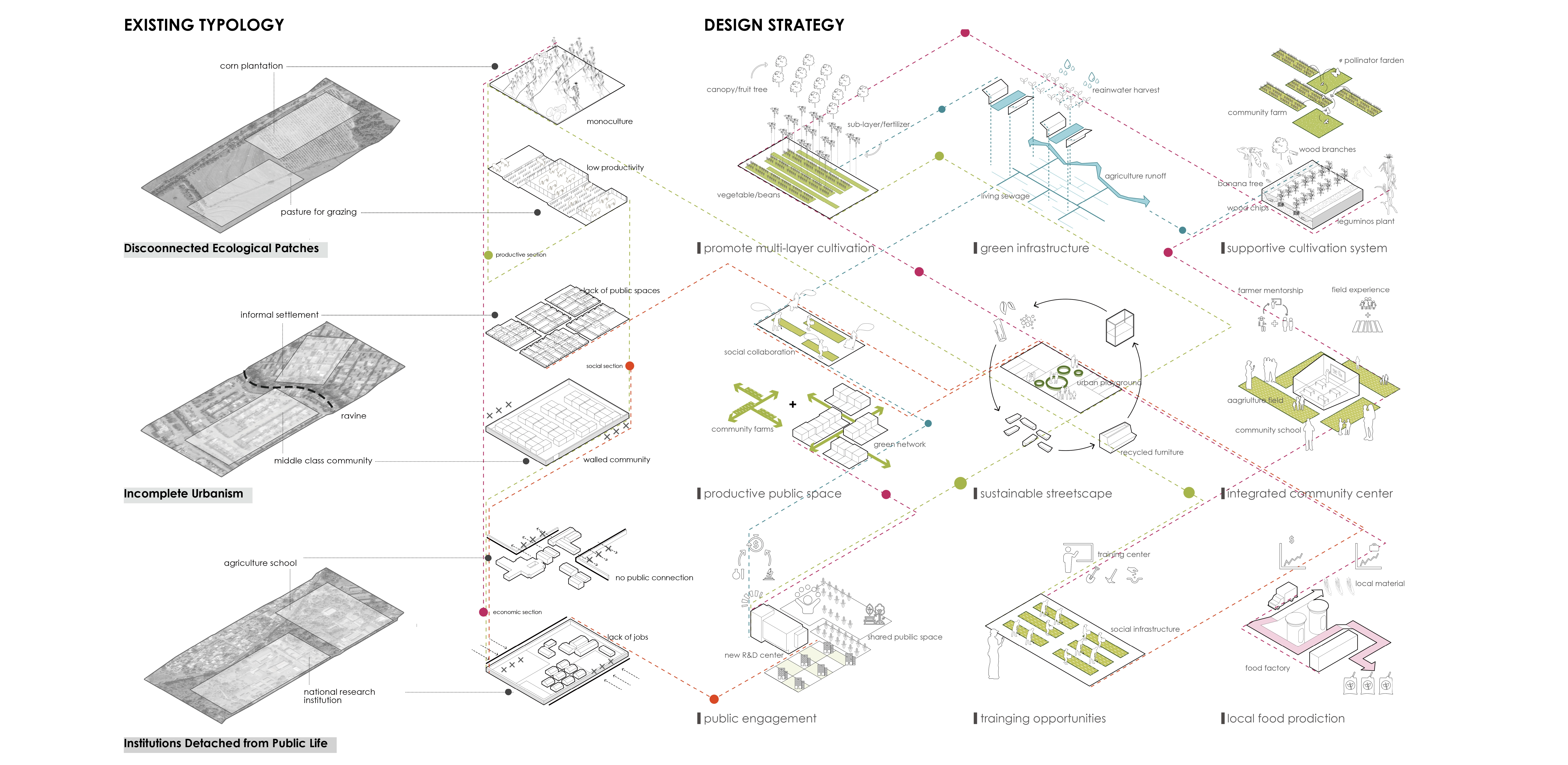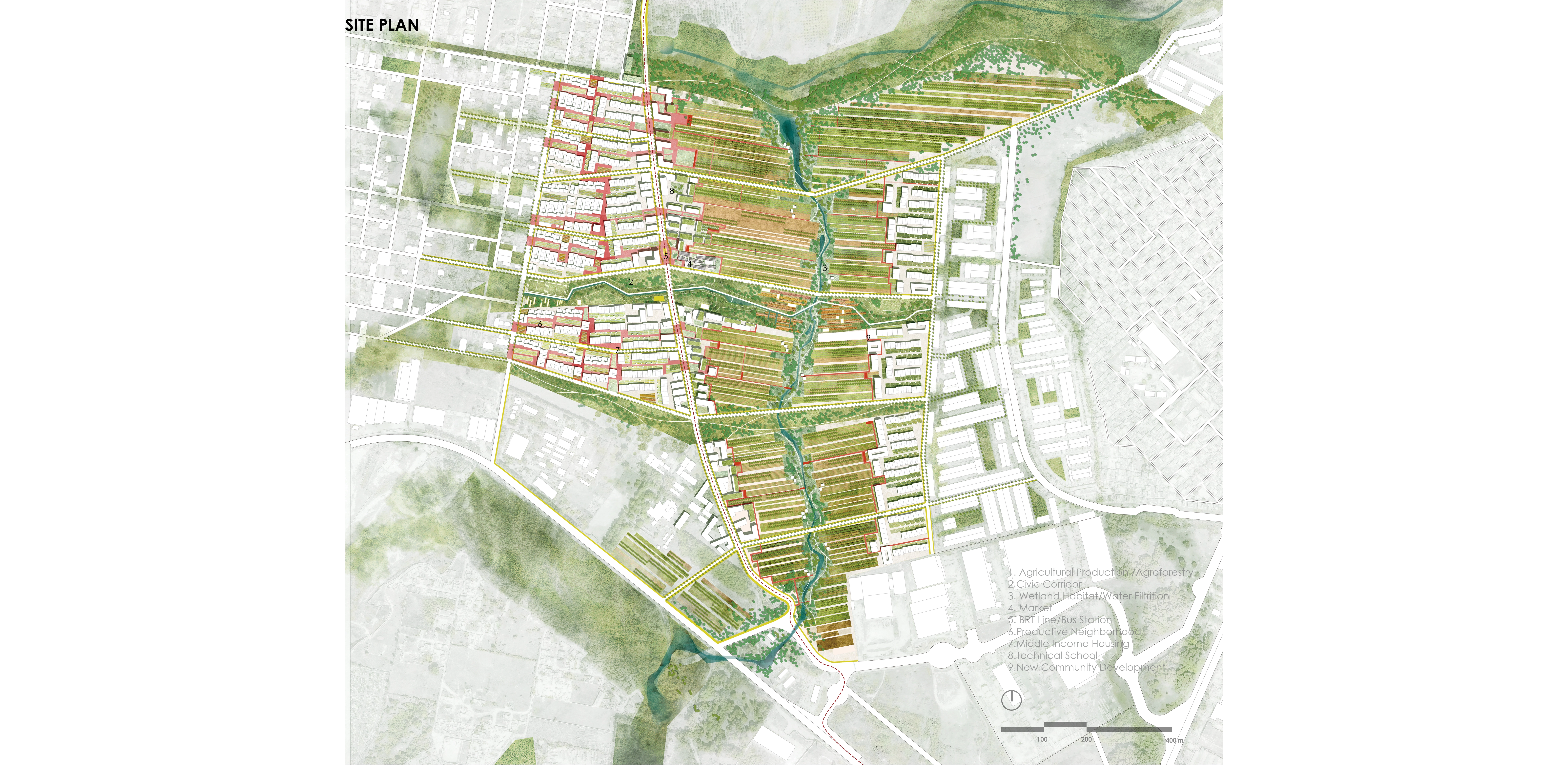 This currently under-utilized and homogeneous agricultural site, which separates informal from formal neighborhoods, can transform the area into a balanced socially integrated and multi-functional community where sustainable and highly productive agricultural practices are at the core of an integrated social, ecological and economic process.