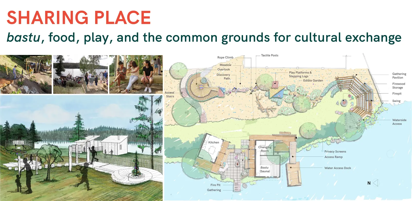 An initial master plan explored how multicultural activities, social gathering, and intergenerational play could accommodate and nurture the future and evolving contexts within Dals Långed. An important consideration was how the site could be reactivated while preserving and enhancing sensitive ecological assets. Following the required setbacks, the structures were built on post/pier footings to minimize excavation, water access was achieved using floating rafts, and denuded areas were revegetated.