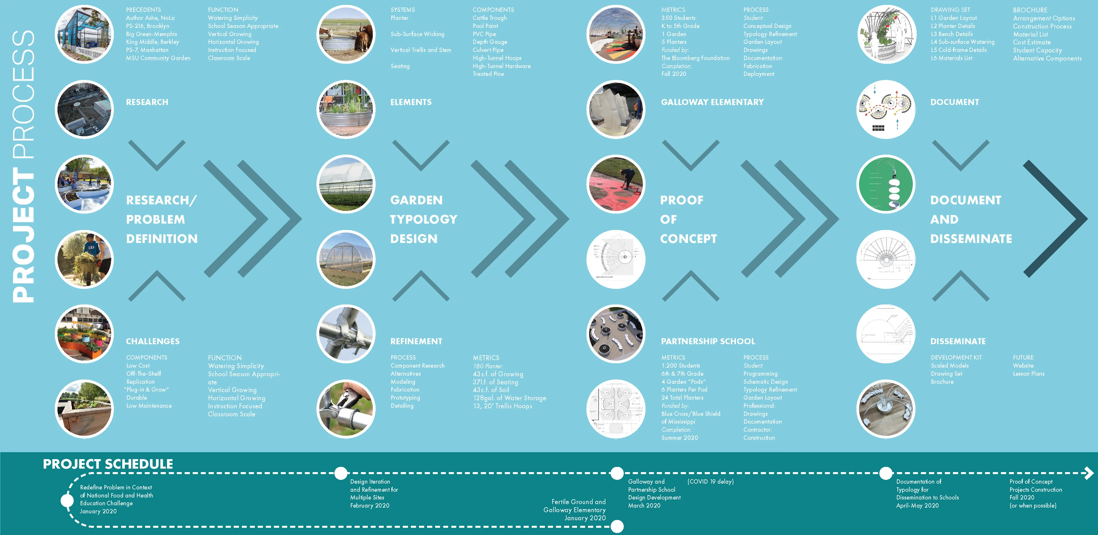With going online for COVID 19, the team focused on documenting the typology so that it can be shared with any school looking to create a dynamic learning garden. The team developed construction drawings, diagrams, material lists, and a brochure so that will eventually be hosted on an extension website for download.