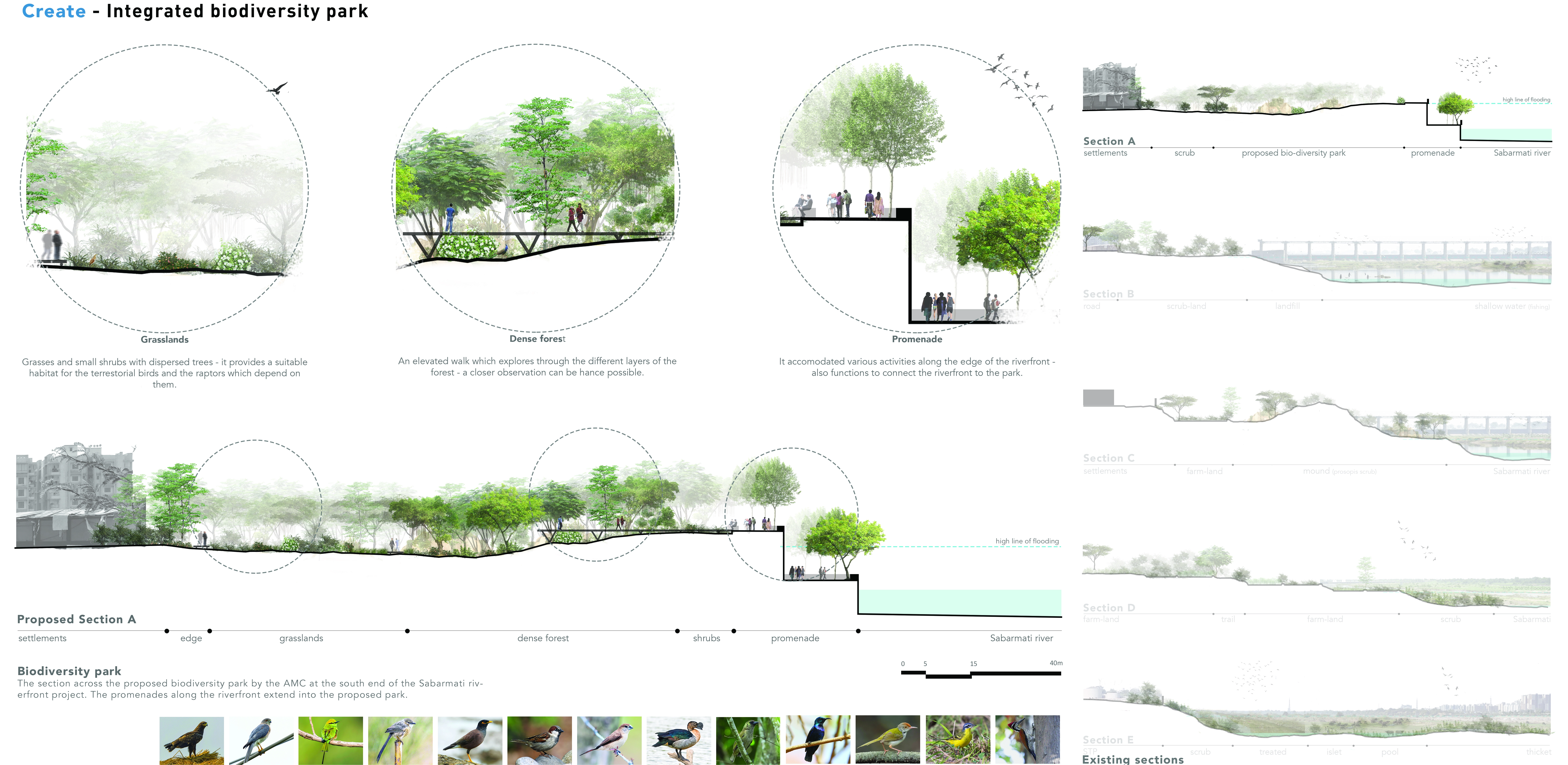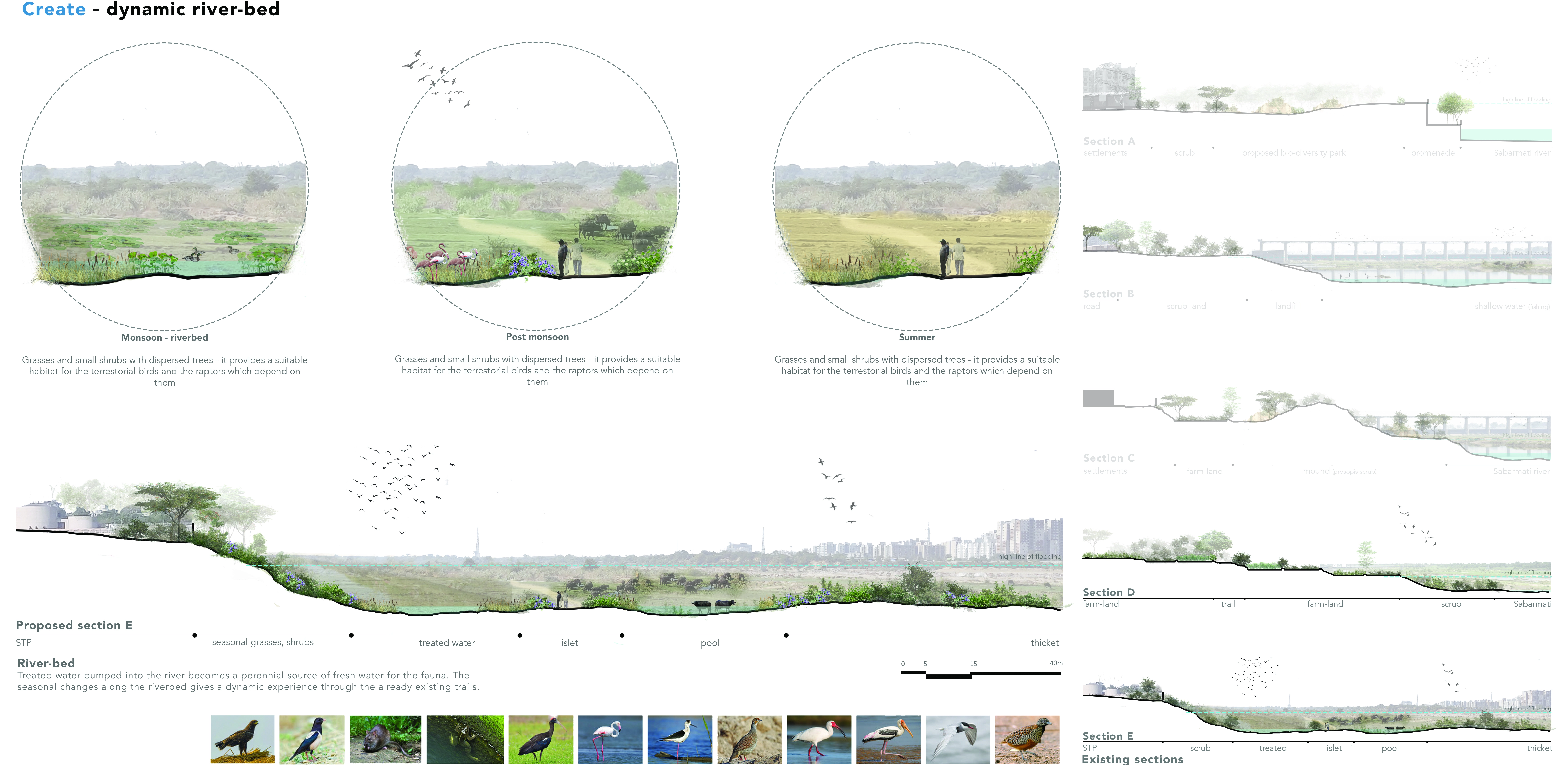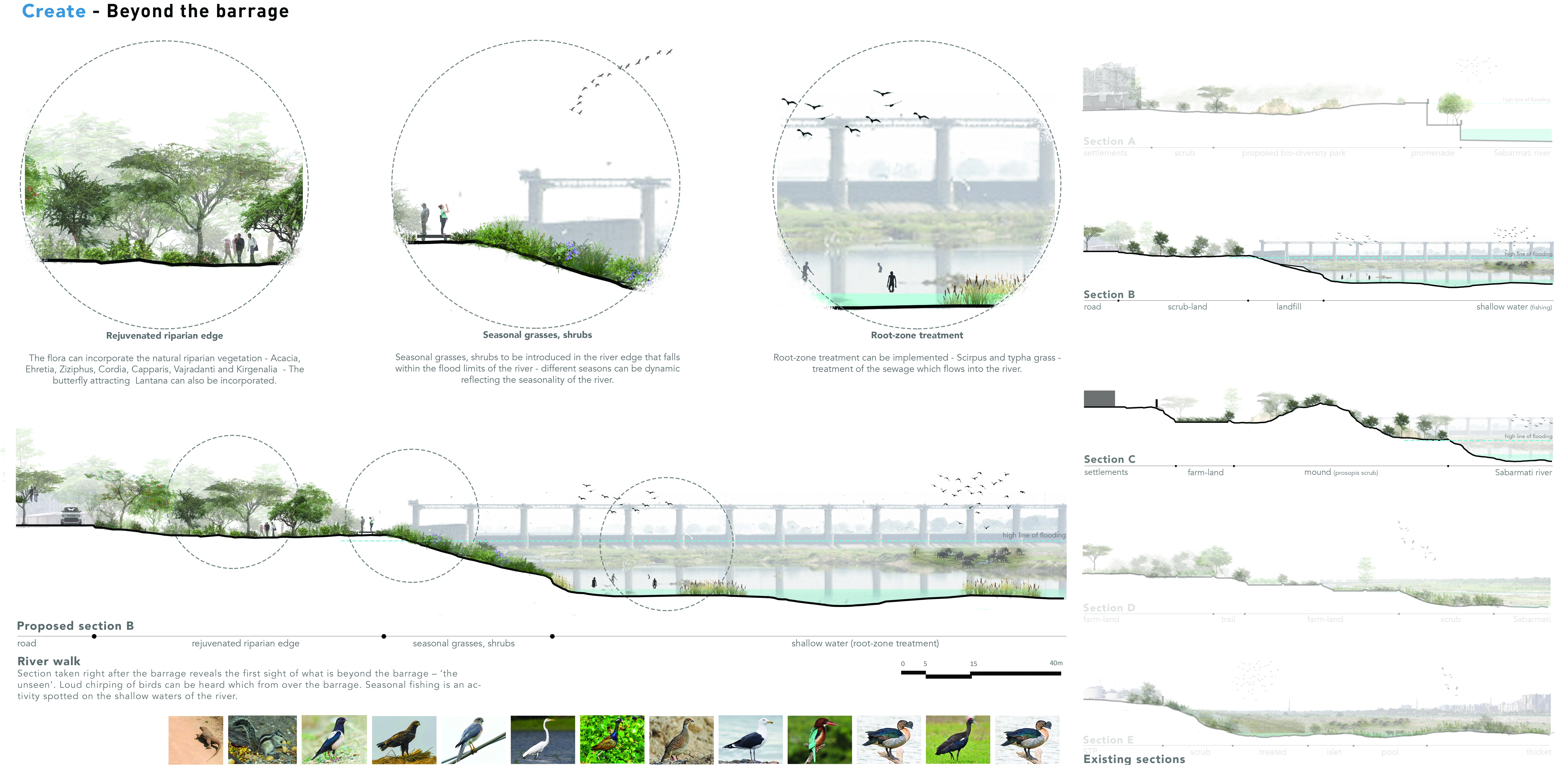 The project explores the possibility of creating new links and networks that would weave the larger landscape to the urban environment. “Weaving the unseen”, aims to reinforce movement of urban fauna and integrate real experience of nature in the raw to the inhabitants of Ahmedabad. -