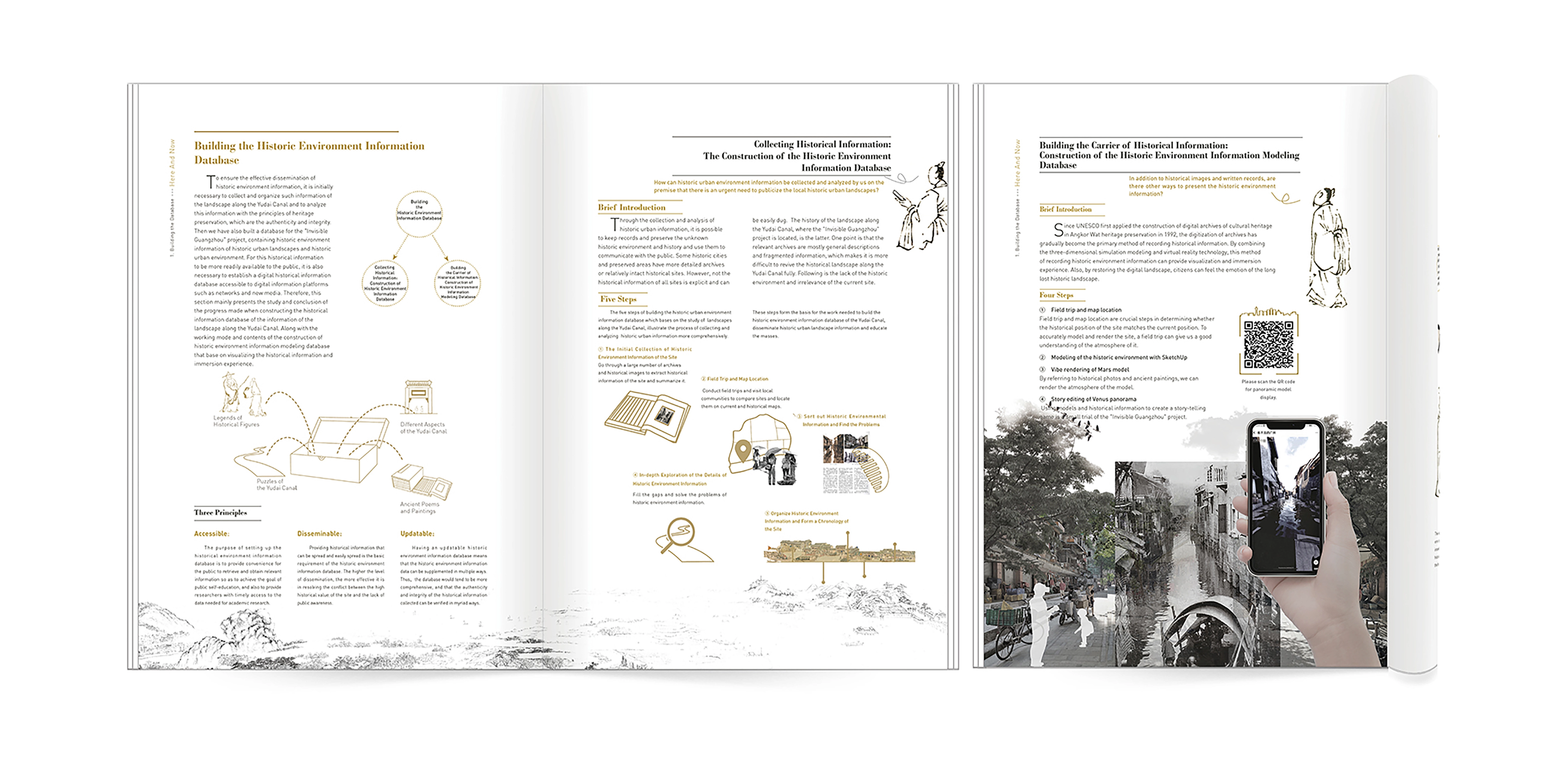 The "Invisible Guangzhou" Historic Environment Education Guide Book mainly aims at community workers and workers of environmental education. They can build a customary Historic Environment Education Platform with the instruction of the manual. Historic Environment Education should be carried out from four aspects: Construction of the Historic Environment Information Database, Disseminating Information of the Historic Environment, Development of educational public participation activities, Performance evaluation of Historic Environment Education and its future development.