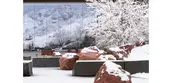 -- Regionally sourced materials invest in regional and local economies, reduce carbon footprint, and deepen the story of place. Gabion retaining walls are constructed of crushed red sandstone stockpiled during excavation; material color and form blends with the geological features of the Wasatch Mountains. To restore biological diversity, the team gathered seeds from the site prior to disturbance, later reintroducing them in a plant matrix that included additional species found on adjacent lands.