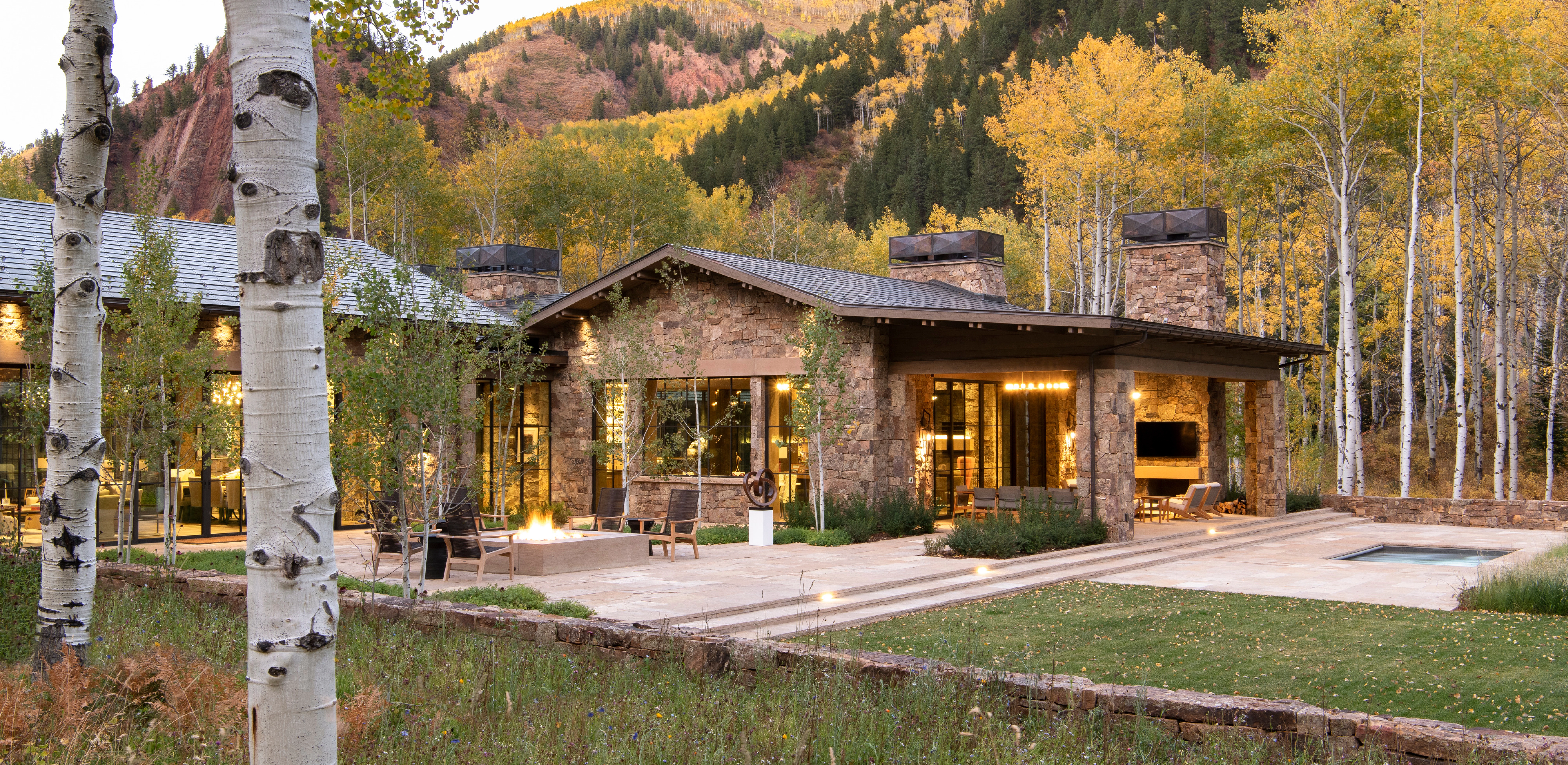 Biophilia, a theory suggesting that humans thrive in environments where the physical, emotional and cognitive effects of nature are in evidence, is made manifest at Highlands Retreat, a family refuge set within the protective canopy of a mature aspen forest in a high alpine valley. Using the surrounding environment as the impetus for design, the landscape architect’s sensitive site planning reflects a deference to the nuances of seasonal change and the whims of a mountainous environment. A healthy montane forest ecosystem teems with a rich palette of native grasses, forbs, and wildflowers, setting the stage for an environmentally sensitive design, one that proffers both a sense of adventure and peace to the owners and their guests.