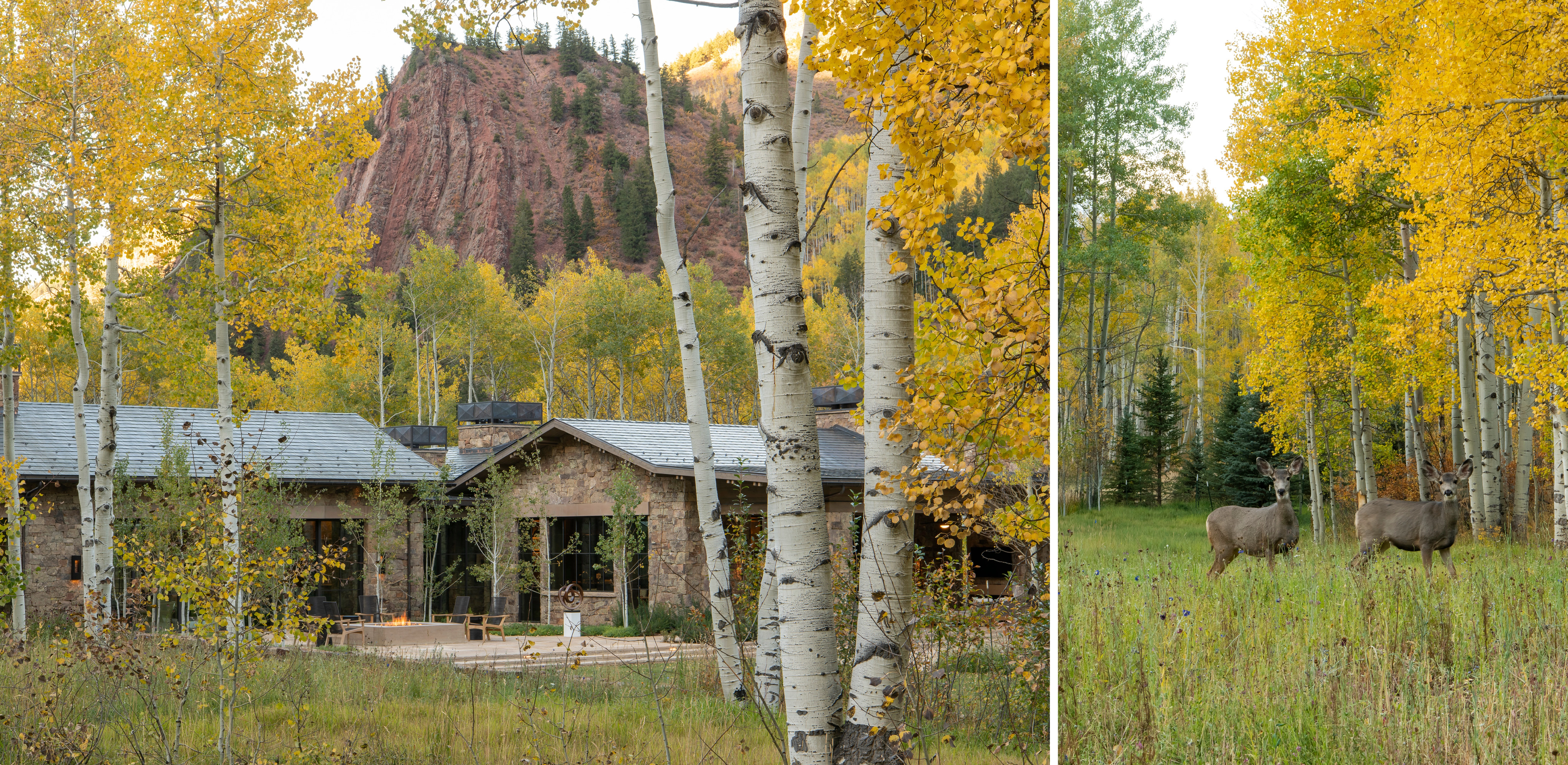 The planting design takes its cue from the surrounding high mountain environment. Layers of single plant species build upon one another to create a lush and textural palette in areas close to the home, further out, context-sensitive and sustainable strategies reestablish indigenous plant communities and enhance wildlife habitat. Together, with successional plantings of young aspens and a native grass and wildflower seed mix, areas of disturbance were undetectable within a single growing season. The landscape architect’s sensitivity toward land development and design permitted the home to settle within its natural environment, setting the stage for an enduring and remarkable family retreat. -