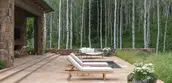 An arrival sequence, choreographed to introduce the woodland setting into the cultivated landscape, begins at the entrance court where a sensual and fluid relationship between architecture and landscape is immediately evident. A hand-carved stone fountain located at the convergence of two paths and framed by a grid of trees, forms a sculptural focal point within the garden. Beyond the low stone walls, a painterly vignette of columnar aspen trees unfolds, light and shadow enhanced by the flickering and trembling of leaves in the overhead canopy. A glimpse of restored wildflower meadows and distant forest through the front door ground the home in its setting, while a mass of flowering native shrubs flanking a set of gracious stone steps provide an entry sequence that is highly sophisticated, yet regionally appropriate and comfortably understated.