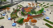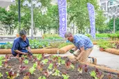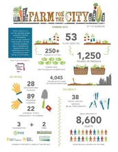 The Farm for the City highlighted the role community gardeners play in strengthening neighborhoods and the gardens' positive impacts on some of the most pressing issues facing our communities, such as food insecurity. This pop-up project transformed a largely barren Philadelphia plaza atop the offices of City License and Inspections into a beautiful production farm. Over fifty crops were grown, with plant selections informed by community gardens and cultures across the city. The design is based on the nautilus shape, a symbol of expansion and renewal. The 2000 sf garden swirled around existing giant game piece sculptures and reached its arms out toward the city. The temporary farm-as-art project delivered over 1200 pounds of produce to feed 8600 men and women who are homeless, at risk of being homeless, or of low-income. The interactive exhibit and working farm invited the public to learn more about community gardening through free workshops, public forums, and activities during the growing season.