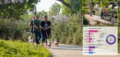While the park is within 100 feet of the freeway, both noise and air particulates are mitigated by a 10-foot-tall sound wall along its entire length. Softscape interventions, similarly, help mitigate heat island effects. By planting more than 300 new trees across the park, the design expands canopy coverage to 48 percent – a significant upgrade in a surrounding city where the average coverage is only 15 percent. The new trees were strategically placed throughout the park to shade features like benches and berms. In addition, a diverse climate-adapted plant community buffers heat from the adjacent streets, making the park an even more inviting destination during summer months.
